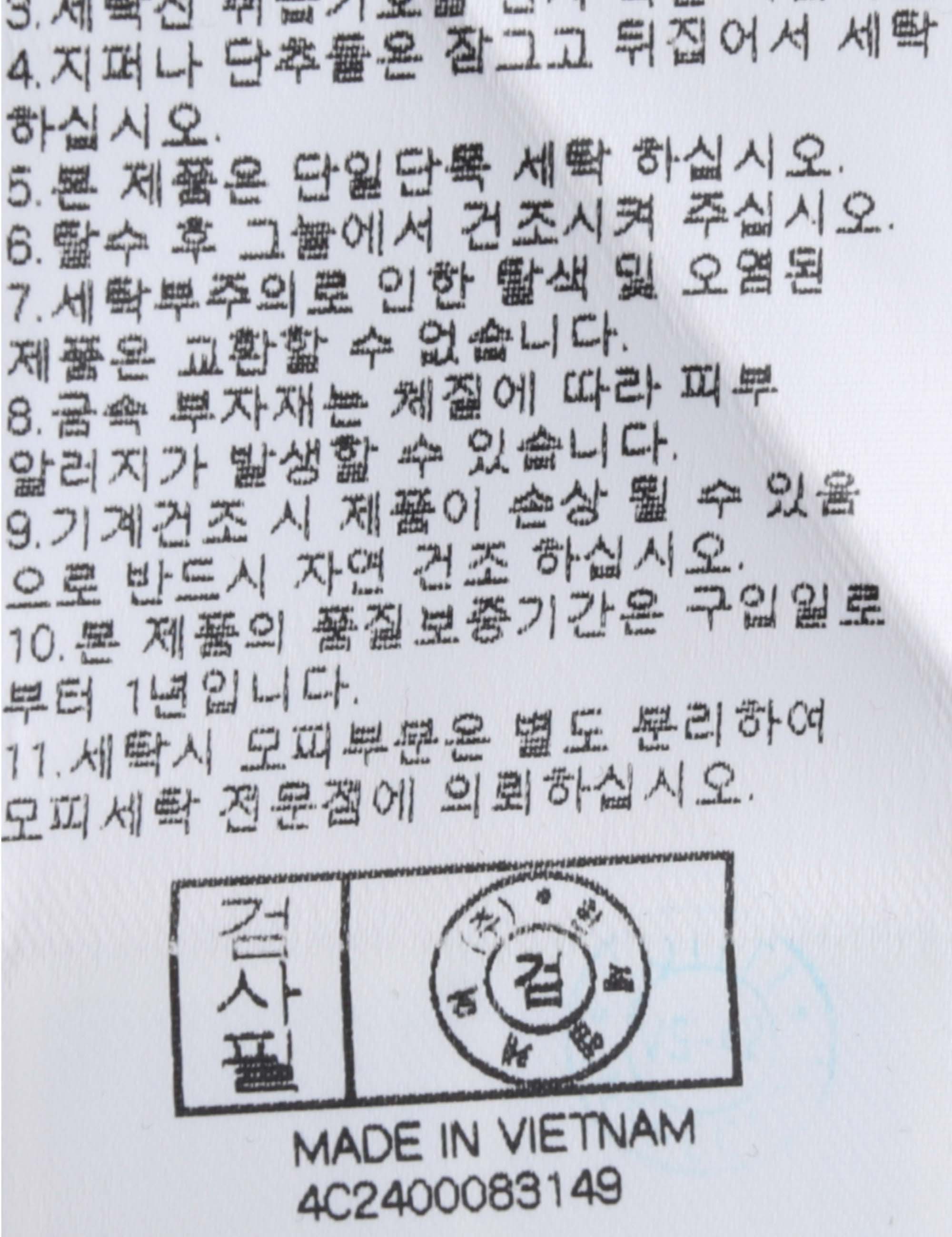 | 세탁방법 및 취급시 주의사항 | 본 제품은 손세탁 하십시오.(케어라벨참고) |