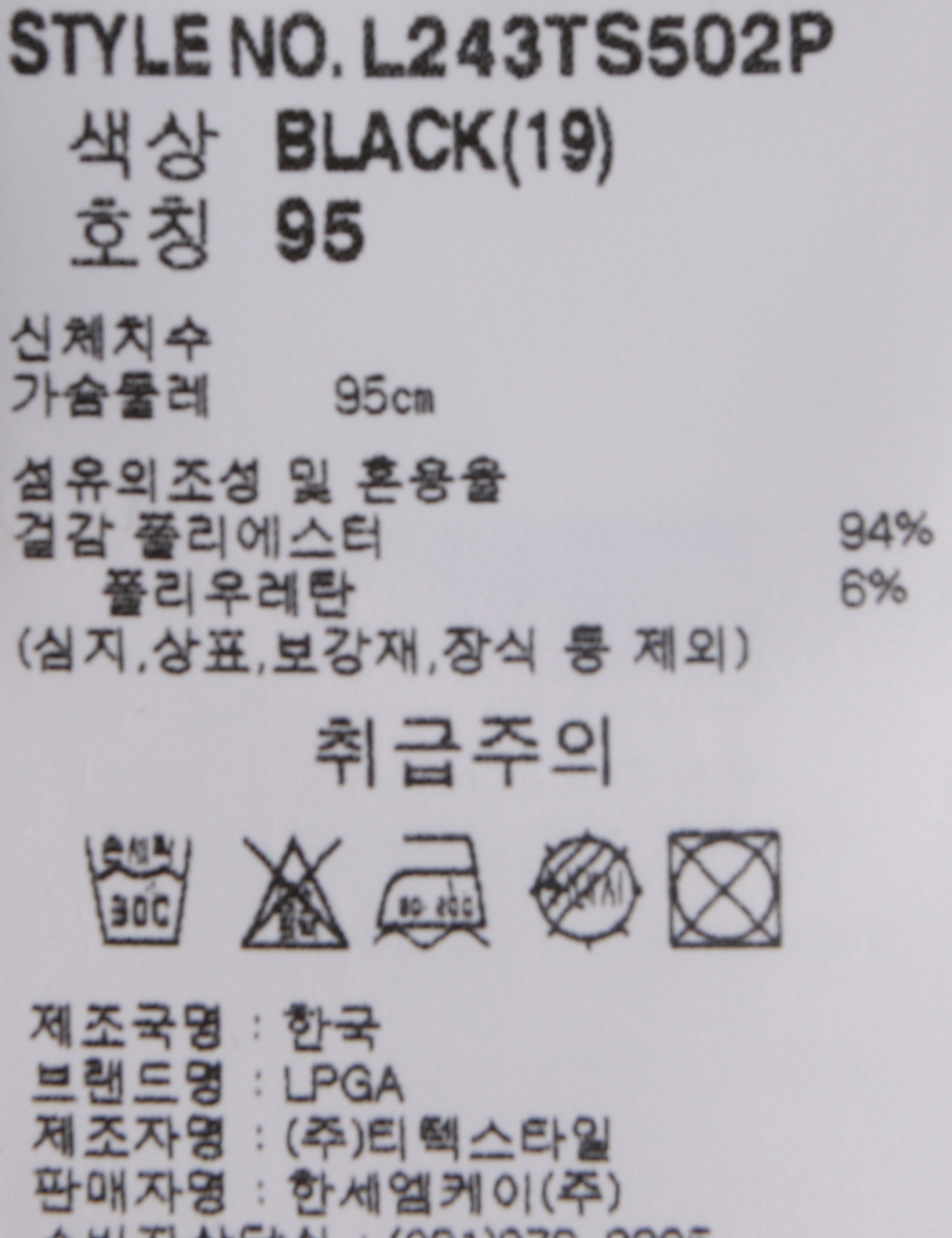 제품소재 [겉감]폴리에스터94% 폴리우레탄6%