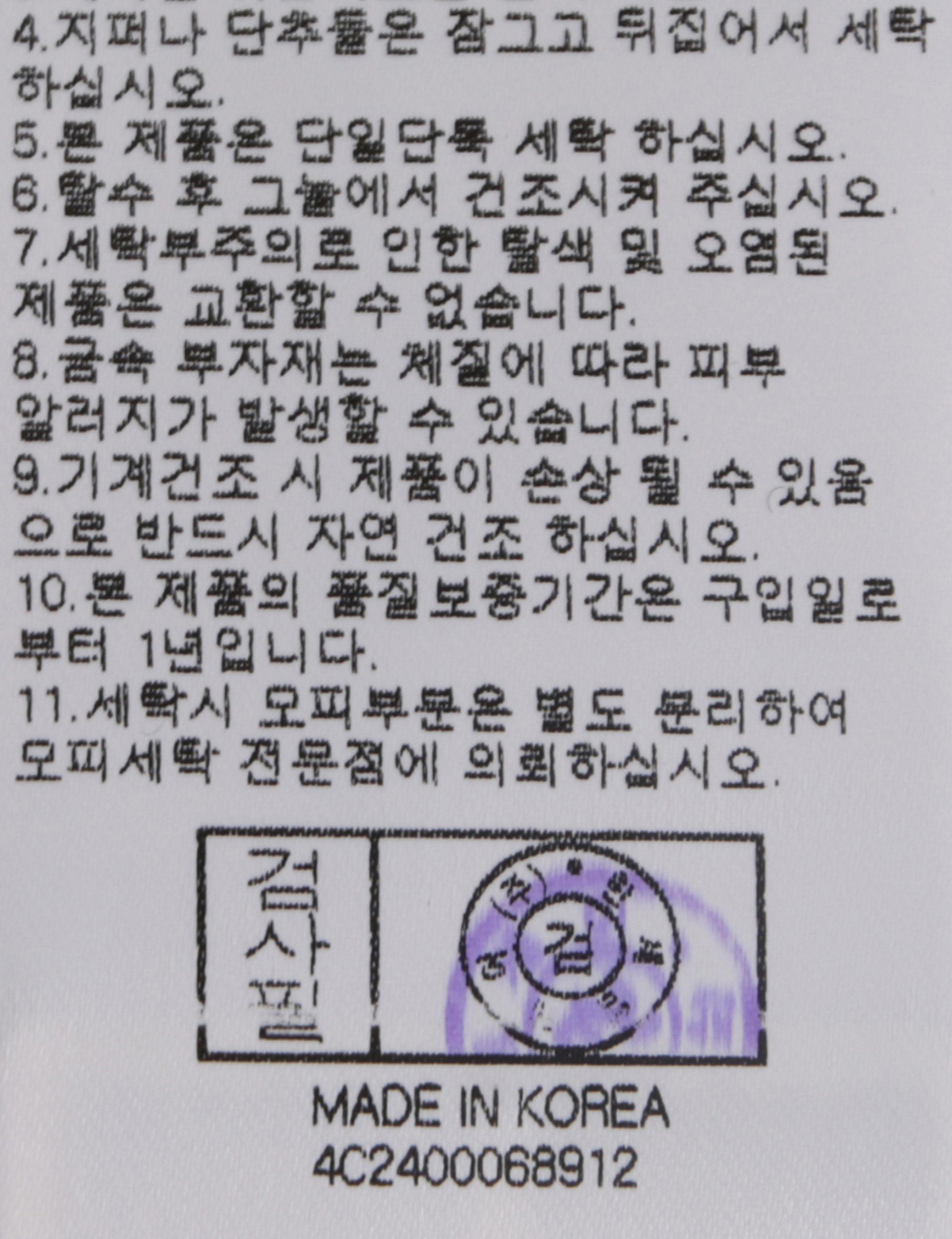 세탁방법 및 취급시 주의사항 본 제품은 손세탁 하십시오.(케어라벨참고)