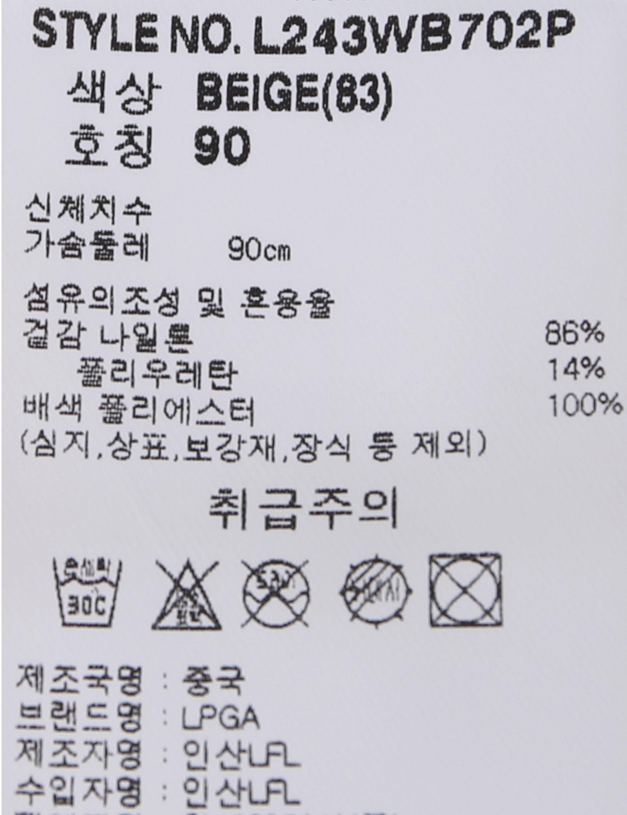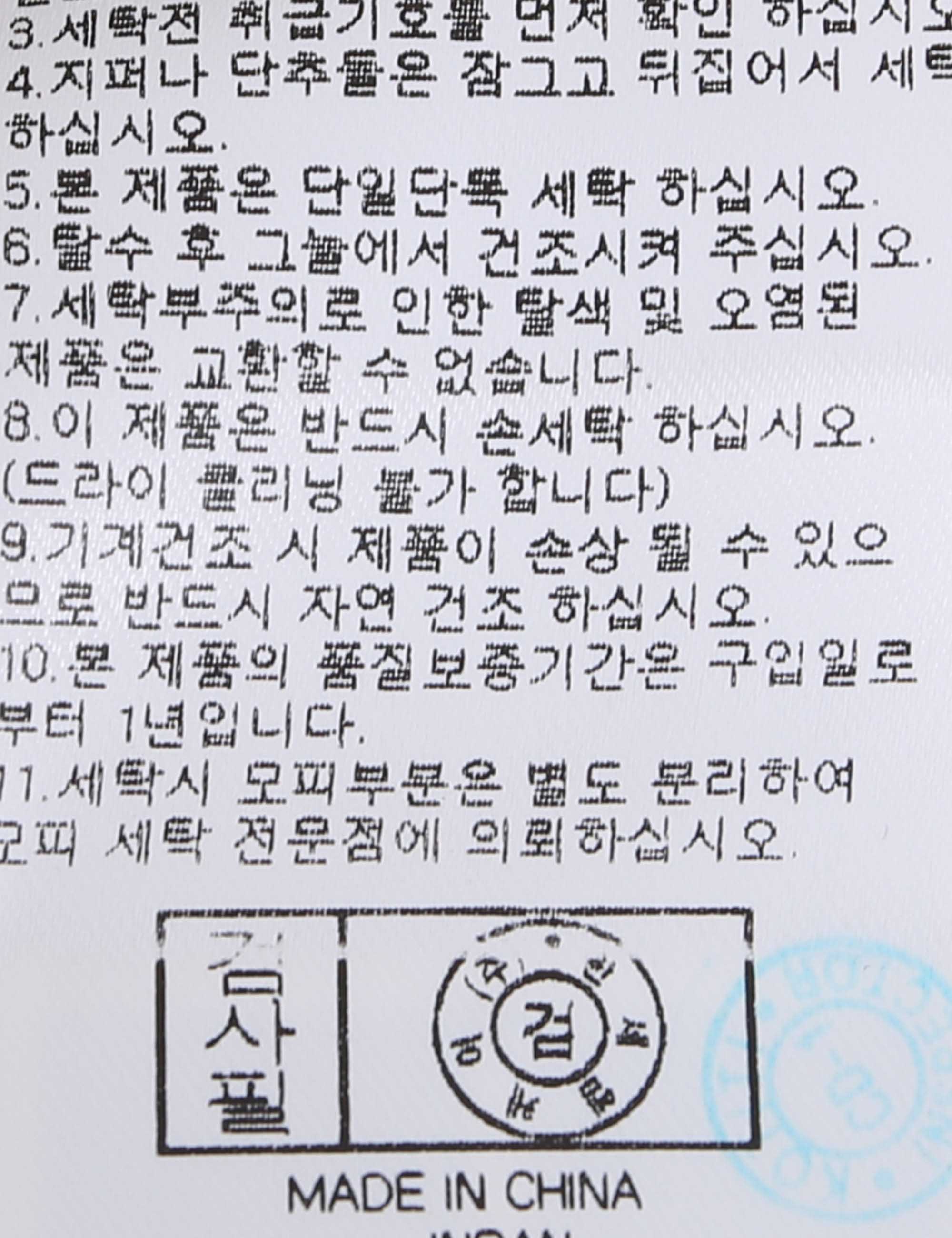 | 세탁방법 및 취급시 주의사항 | 본 제품은 손세탁 하십시오.(케어라벨참고) |