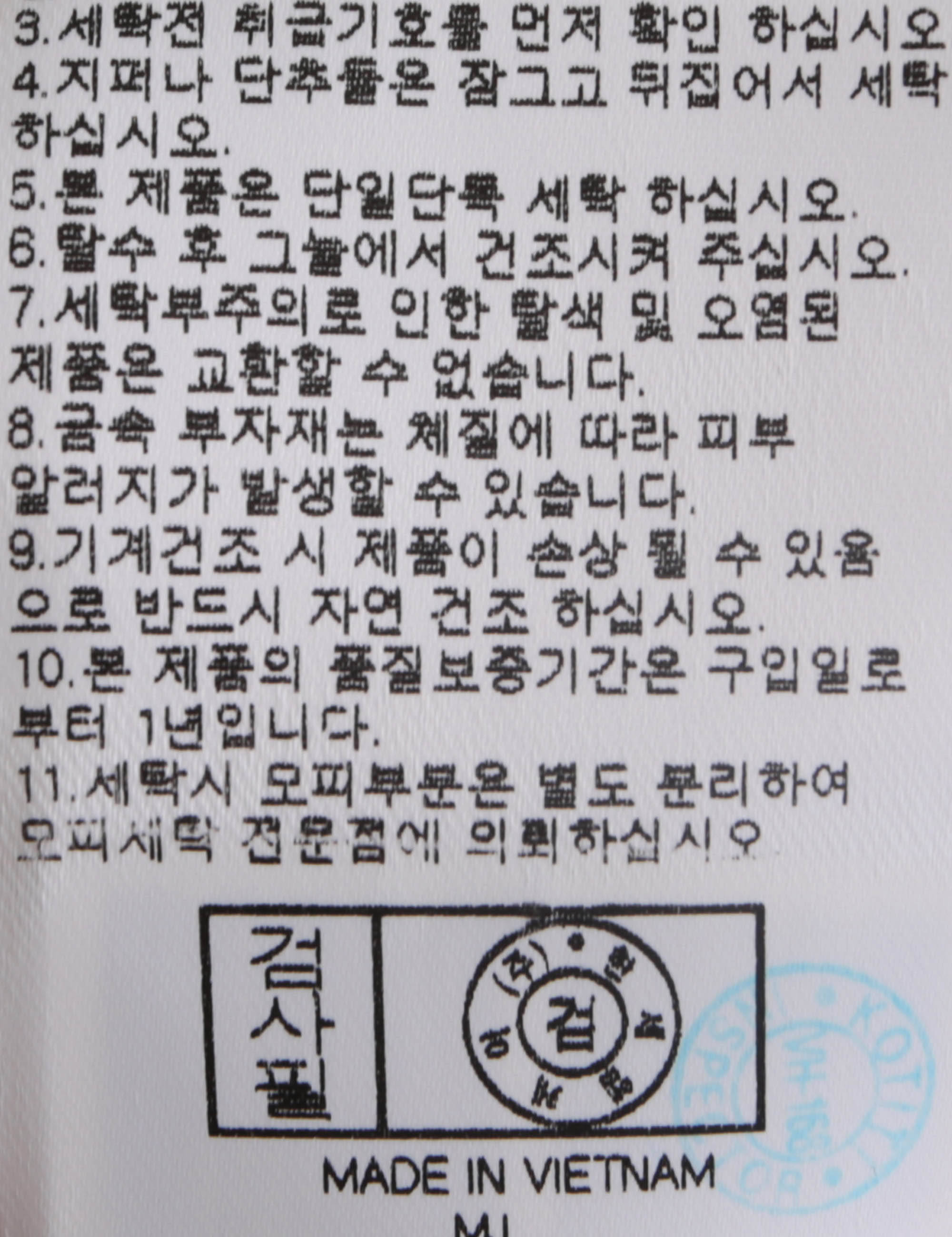 세탁방법 및 취급시 주의사항 본 제품은 손세탁 하십시오.(케어라벨참고)