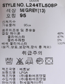 | 세탁방법 및 취급시 주의사항 | 본 제품은 손세탁 하십시오.(케어라벨참고) |