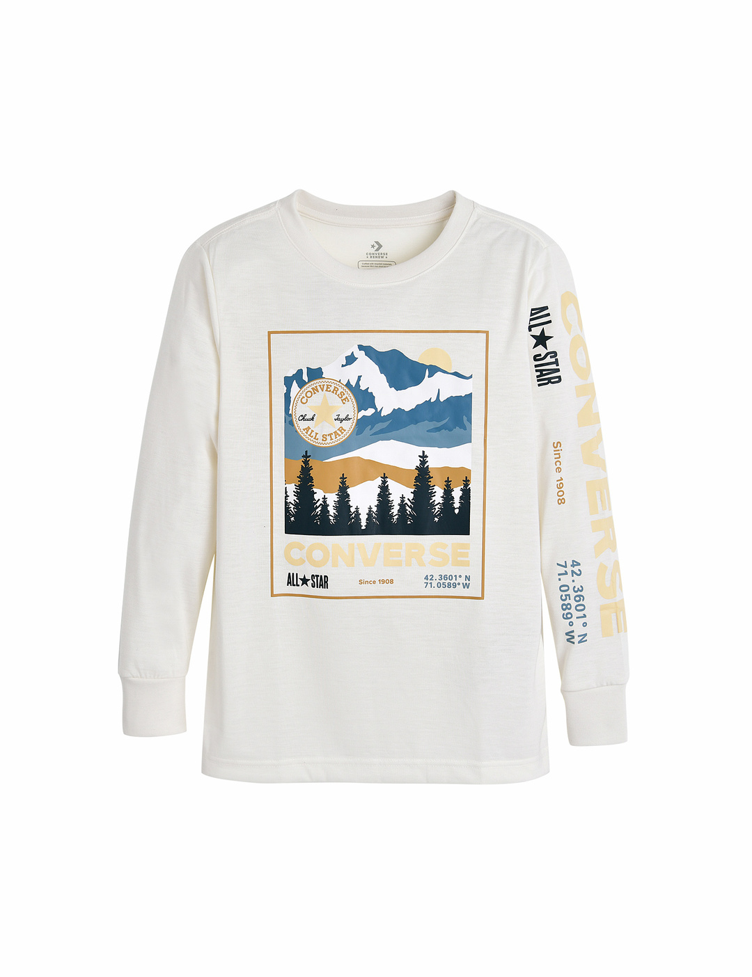 *폴리 저지 소재의 긴팔 티셔츠*전면의 마운틴 그래픽과 소매 측면 부분의 레터링으로 포인트를준 제품