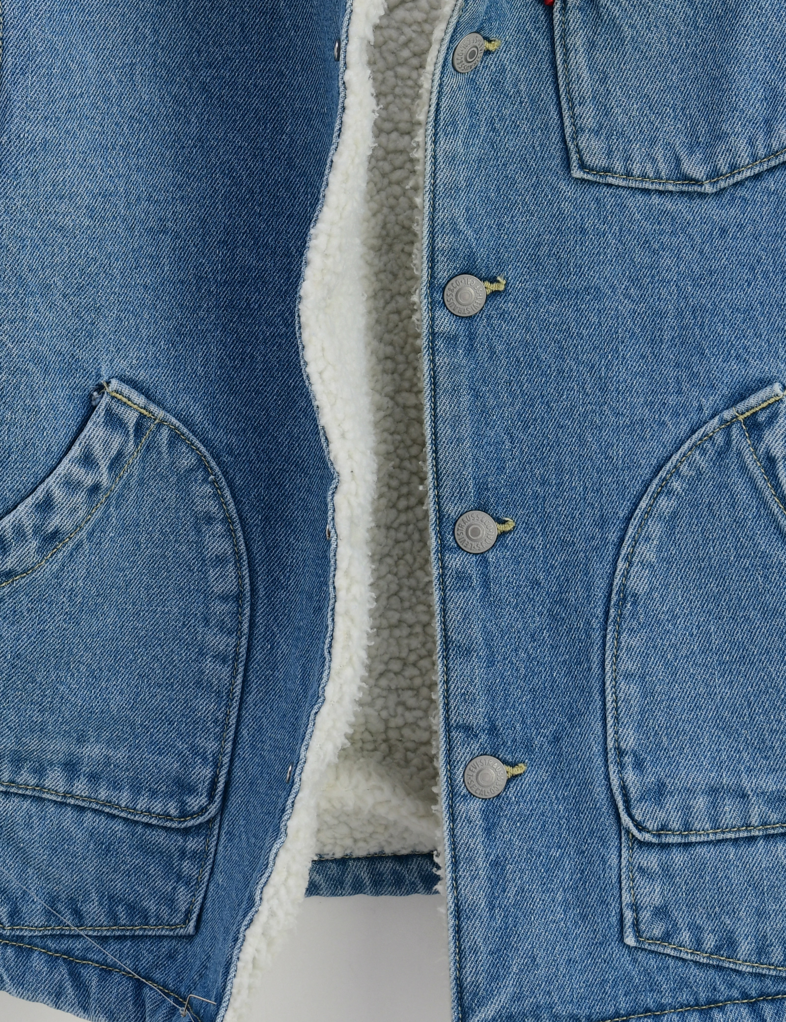 부드러운 셰르파 안감이 카라와 몸판에 들어가 있고, 스냅버튼 여밈으로 된 가벼운 겨울 트러커