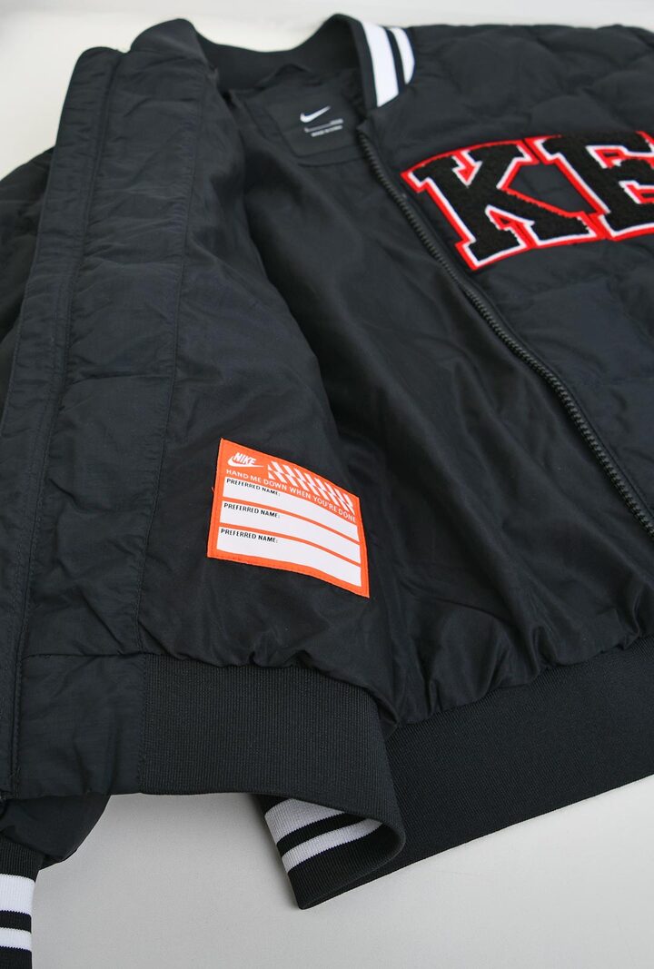 • 가슴의 NIKE 로고와 봄버 자켓 디테일이 포인트인 스타일