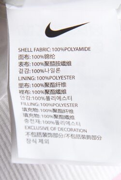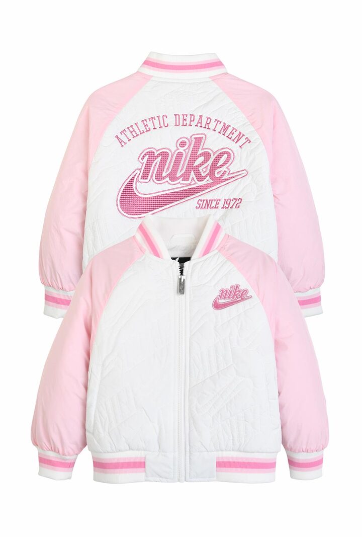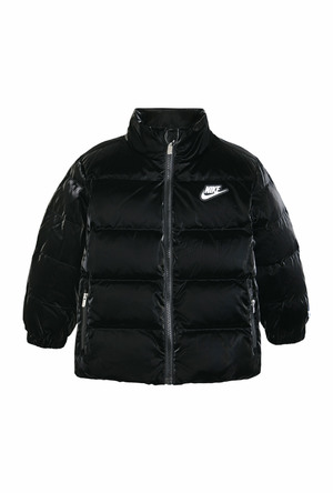 • 몸판 부분에 볼드한 NIKE 로고가 퀼팅으로 작업되어 돋보이는 스타일