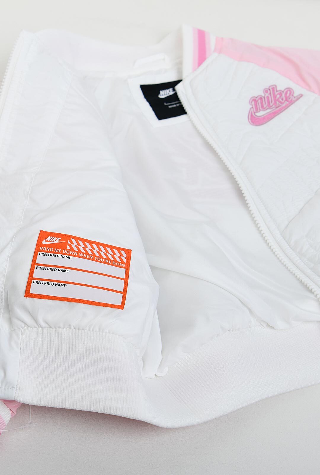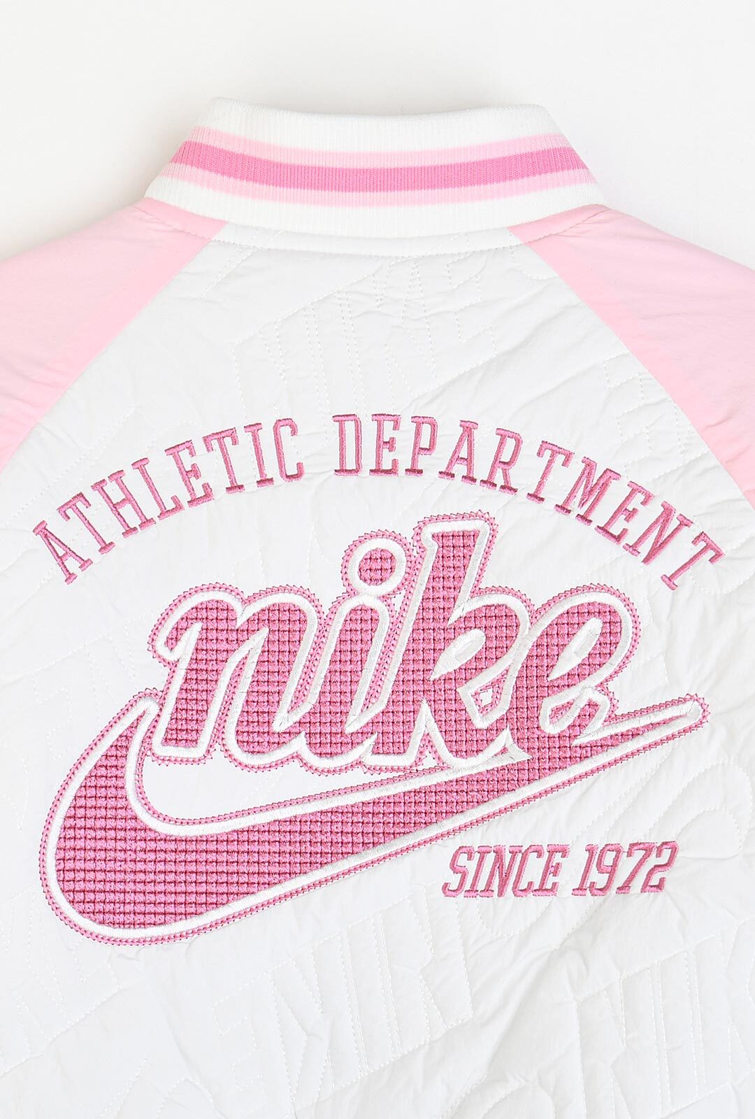 • 몸판 부분에 볼드한 NIKE 로고가 퀼팅으로 작업되어 돋보이는 스타일