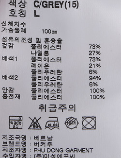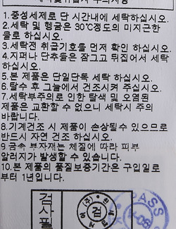 | 세탁방법 및 취급시 주의사항 | 중성세제로 단 시간내에 세탁하십시오.(케어라벨참고) |