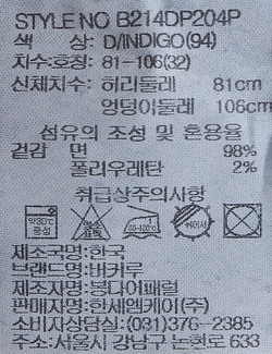 | 상품명 | 남성 WK D톤 데님팬츠(B214DP204P) |