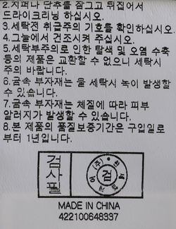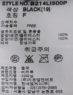 | 세탁방법 및 취급시 주의사항 | 본 제품은 반드시 드라이크리닝 하십시오.(세탁라벨참고) |