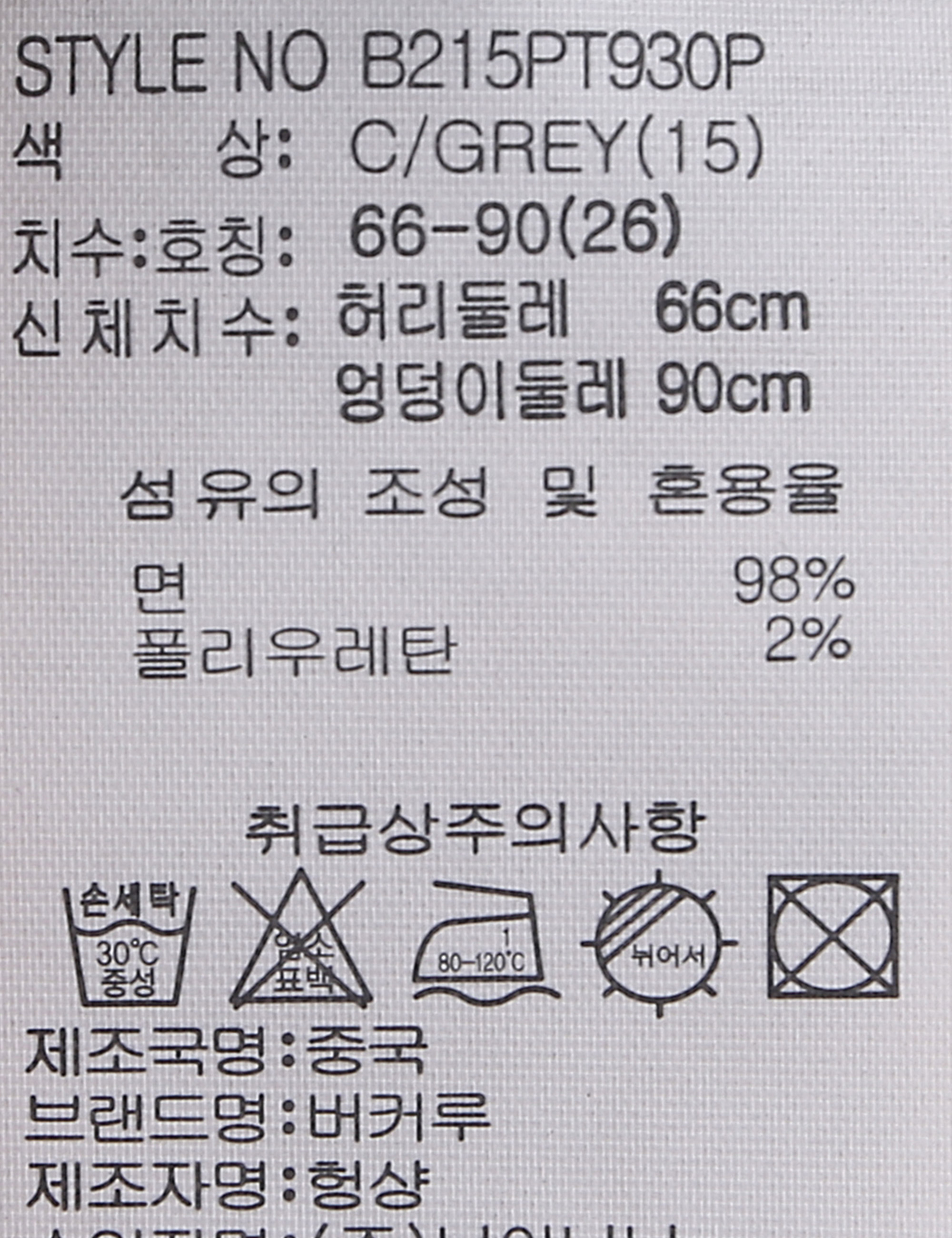 | 상품명 | 여성 10수 면스판 가먼트다잉 MOM핏 팬츠(B215PT930P) |