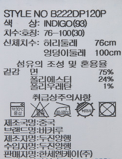 | 세탁방법 및 취급시 주의사항 | 중성세제로 단 시간내에 세탁하십시오.(케어라벨참고) |