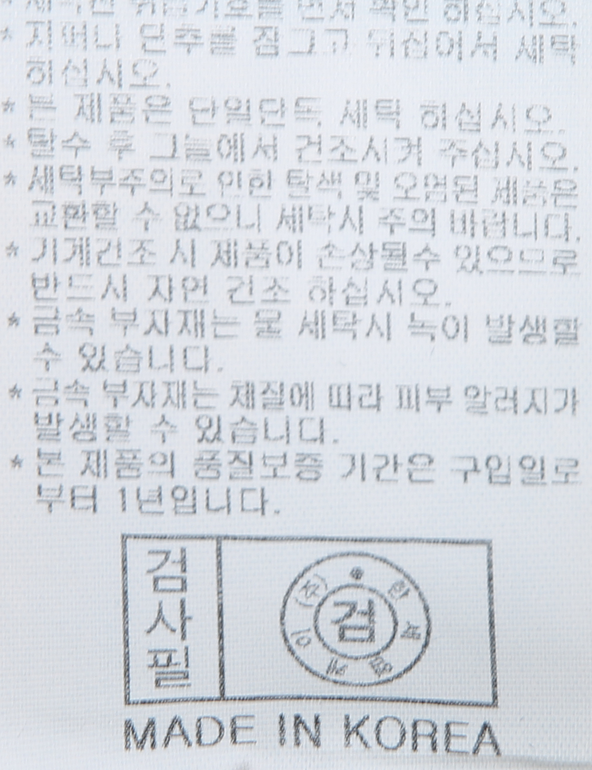 | 세탁방법 및 취급시 주의사항 | 중성세제로 단 시간내에 세탁하십시오.(케어라벨참고) |