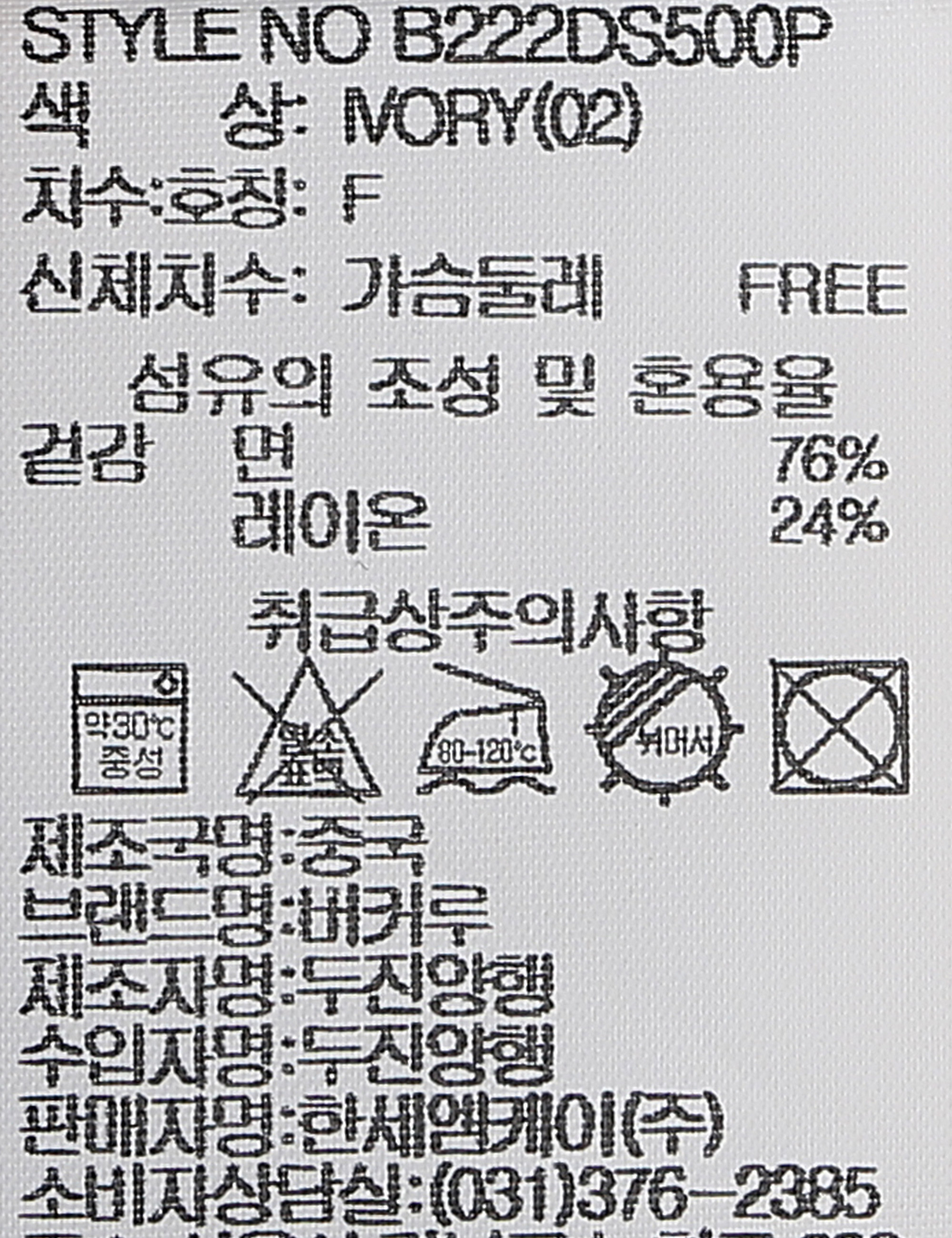 | 세탁방법 및 취급시 주의사항 | 중성세제로 단 시간내에 세탁하십시오.(케어라벨참고) |
