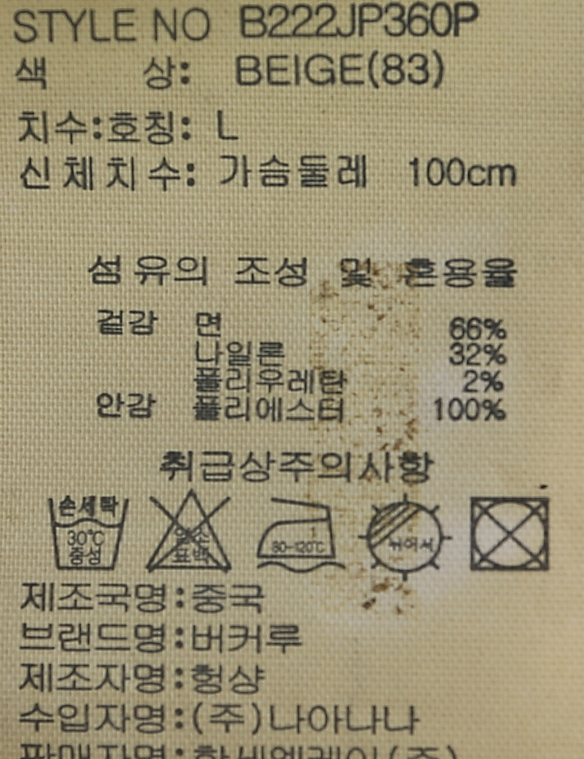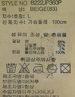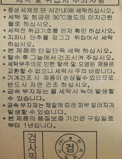 | 세탁방법 및 취급시 주의사항 | 본 제품은 손세탁 하십시오.(케어라벨참고) |