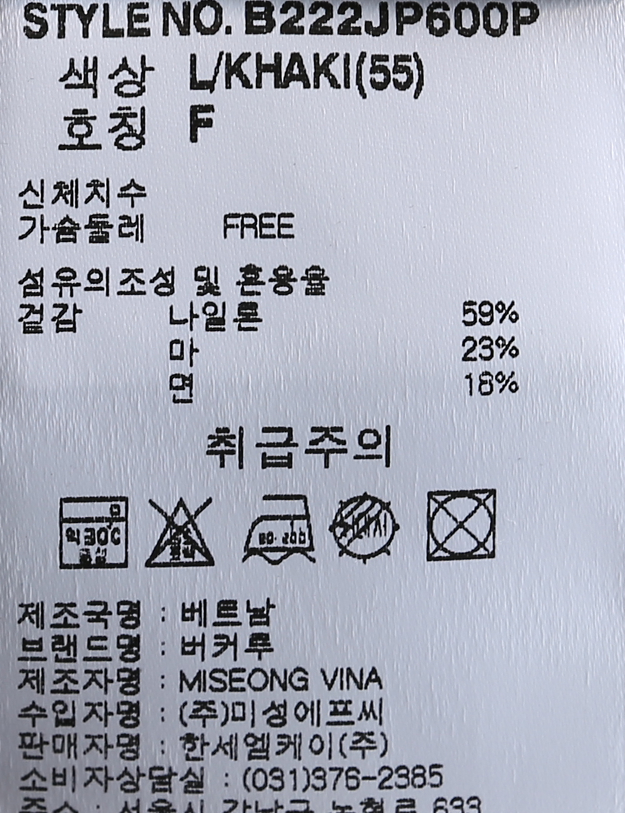 브랜드 홈 바로가기| 제품소재 | [겉감]나일론59% 마23% 면18% |
