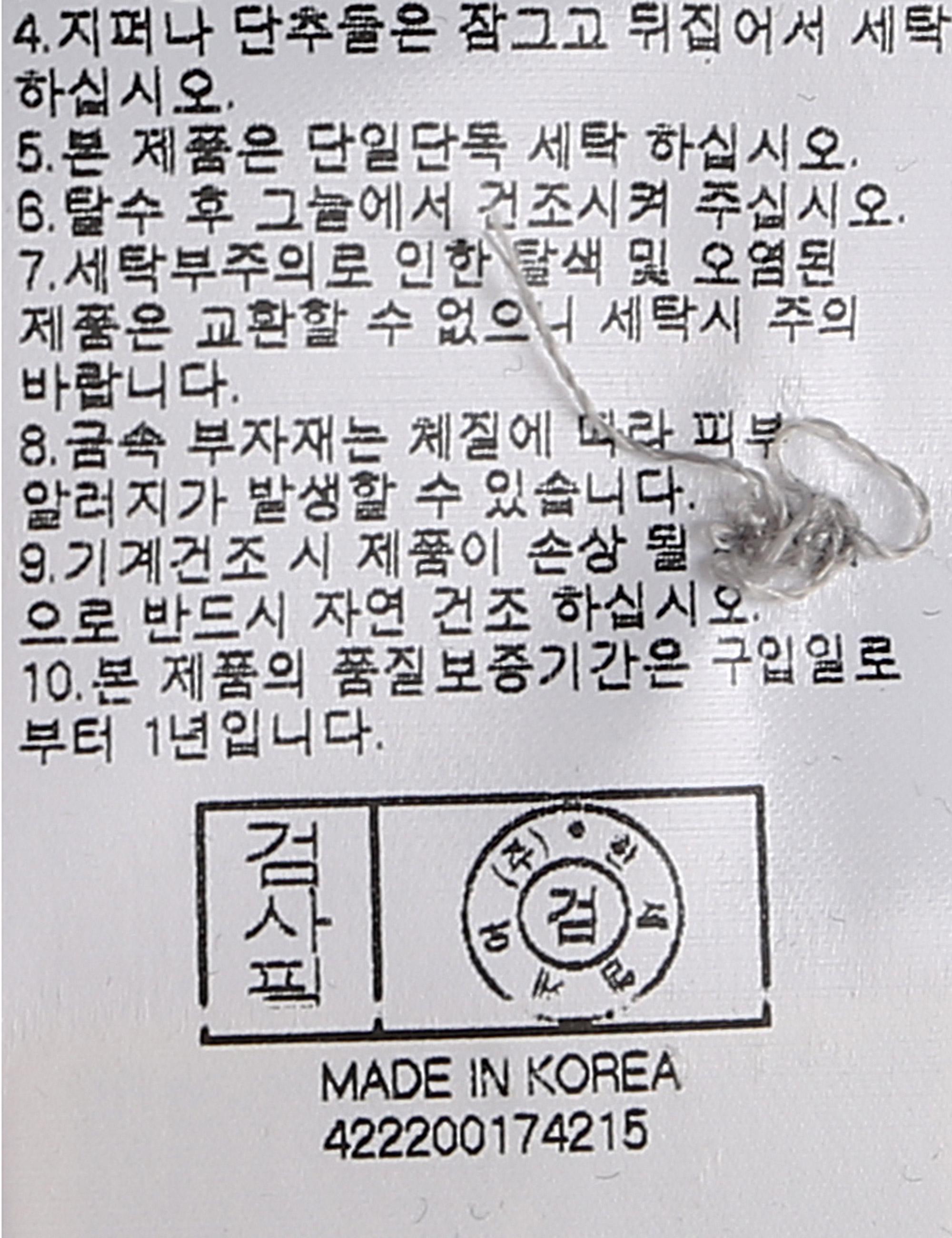 | 세탁방법 및 취급시 주의사항 | 본 제품은 손세탁 하십시오.(케어라벨참고) |