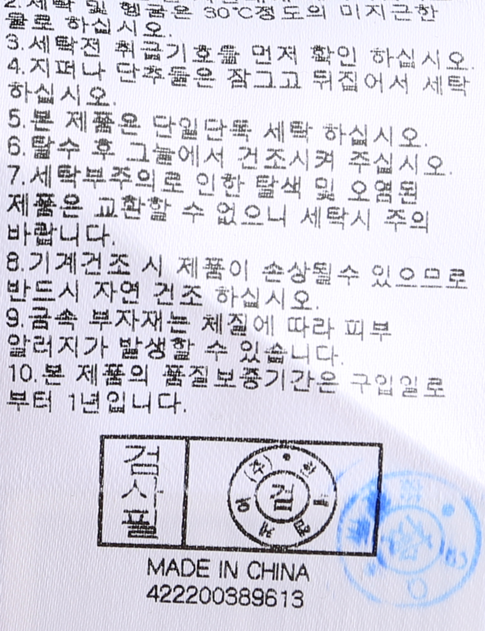 | 세탁방법 및 취급시 주의사항 | 중성세제로 단 시간내에 세탁하십시오.(케어라벨참고) |