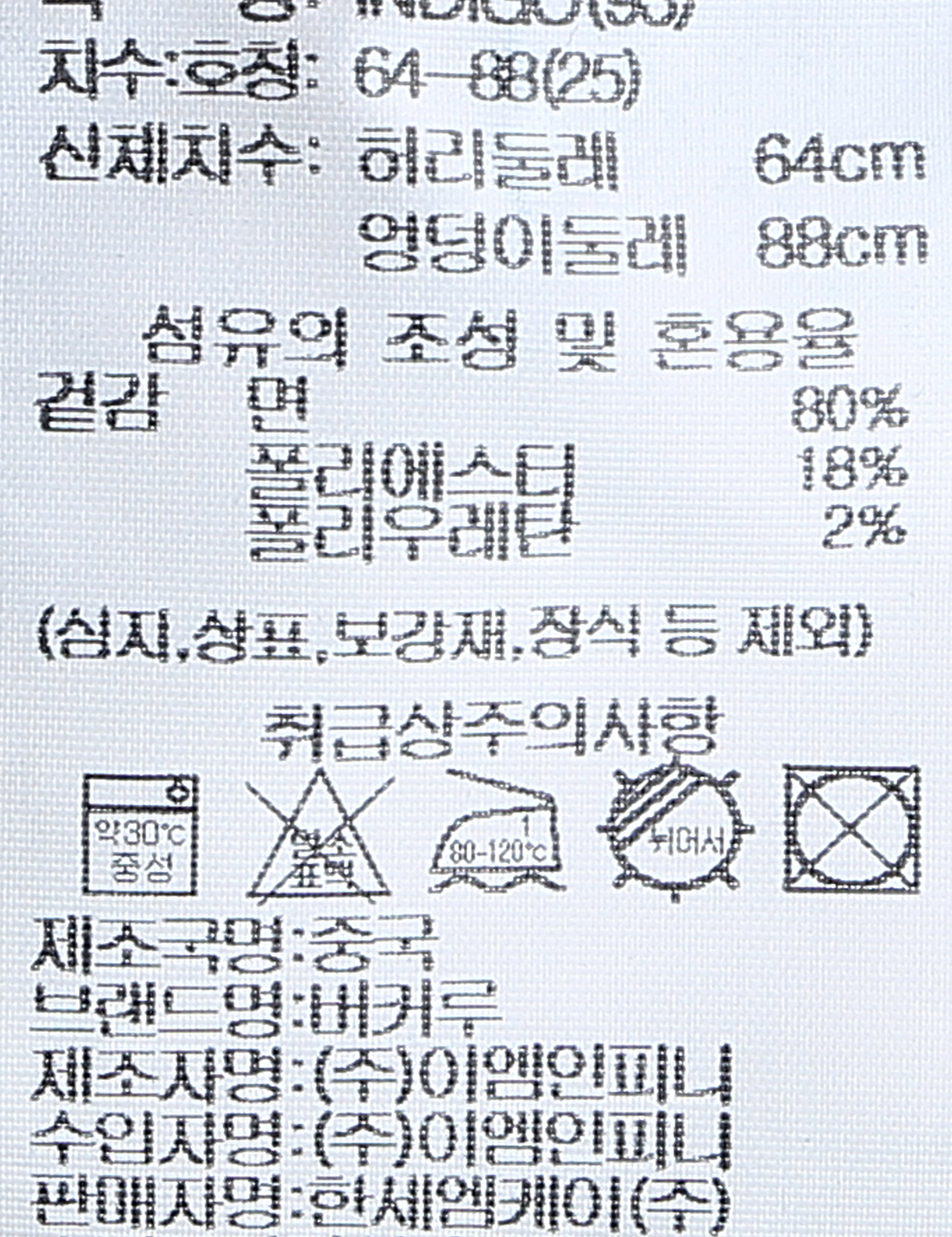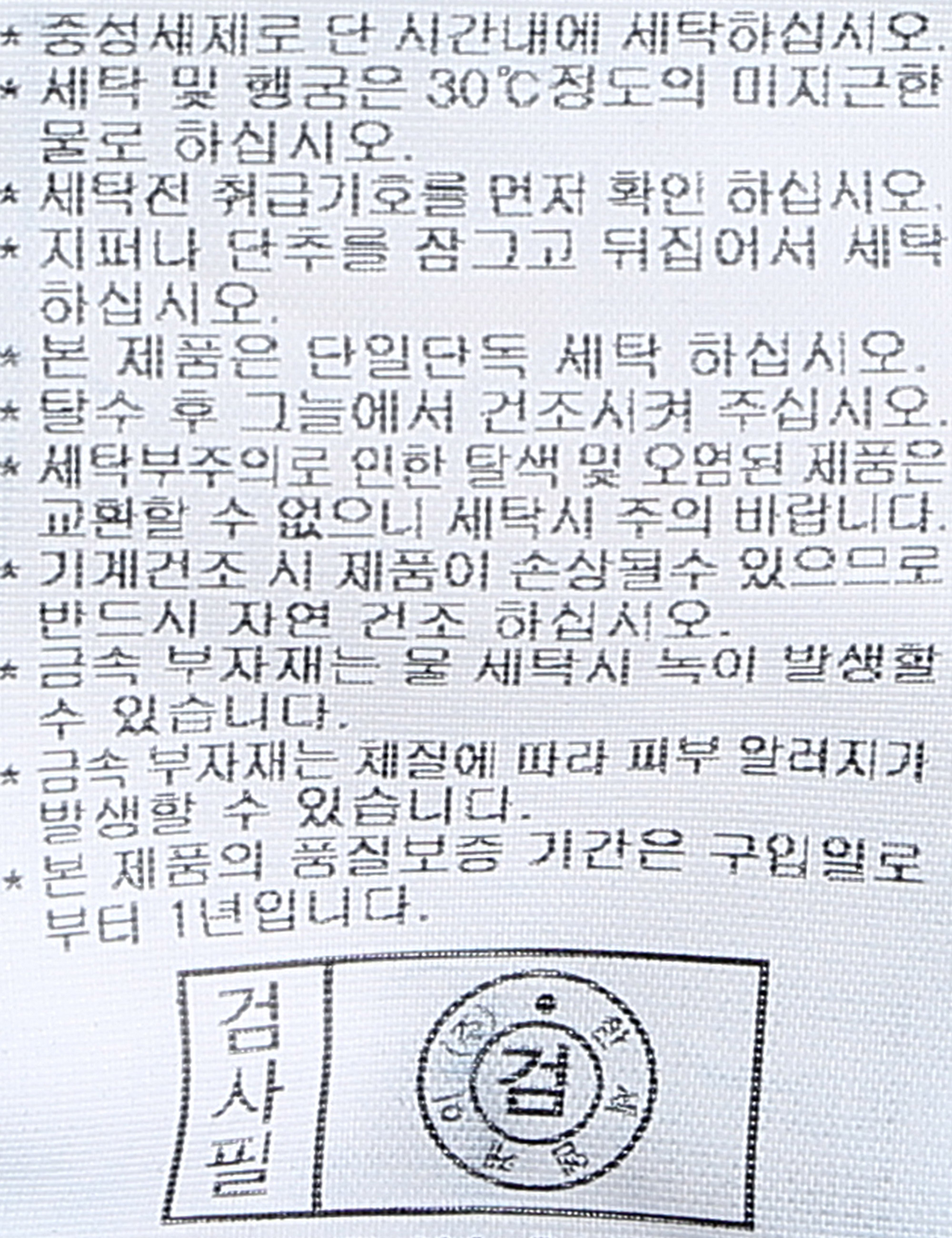 | 세탁방법 및 취급시 주의사항 | 중성세제로 단 시간내에 세탁하십시오.(케어라벨참고) |