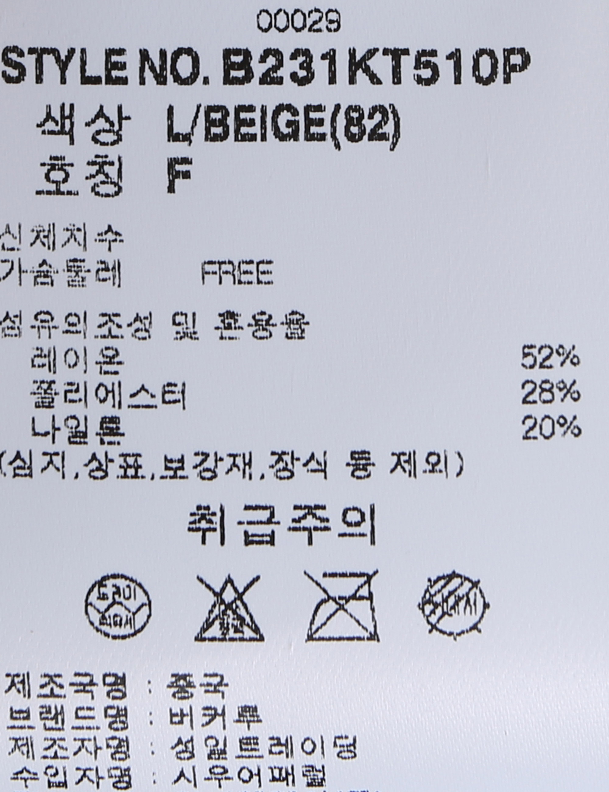 브랜드 홈 바로가기| 제품소재 | [겉감]레이온52% 폴리에스터28% 나일론20% |