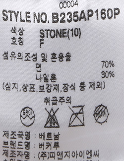 | 취급시 주의사항 | 본 제품은 반드시 드라이크리닝 하십시오.(세탁라벨참고) |