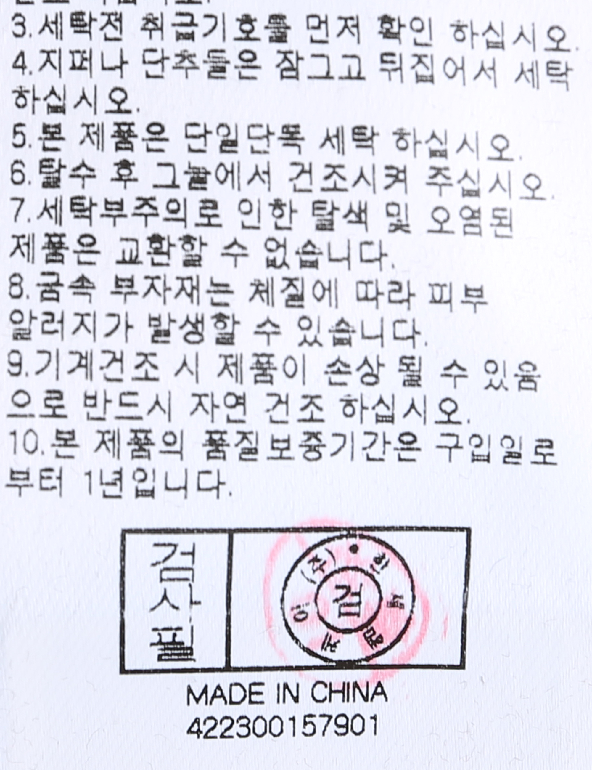 | 세탁방법 및 취급시 주의사항 | 중성세제로 단 시간내에 세탁하십시오.(케어라벨참고) |