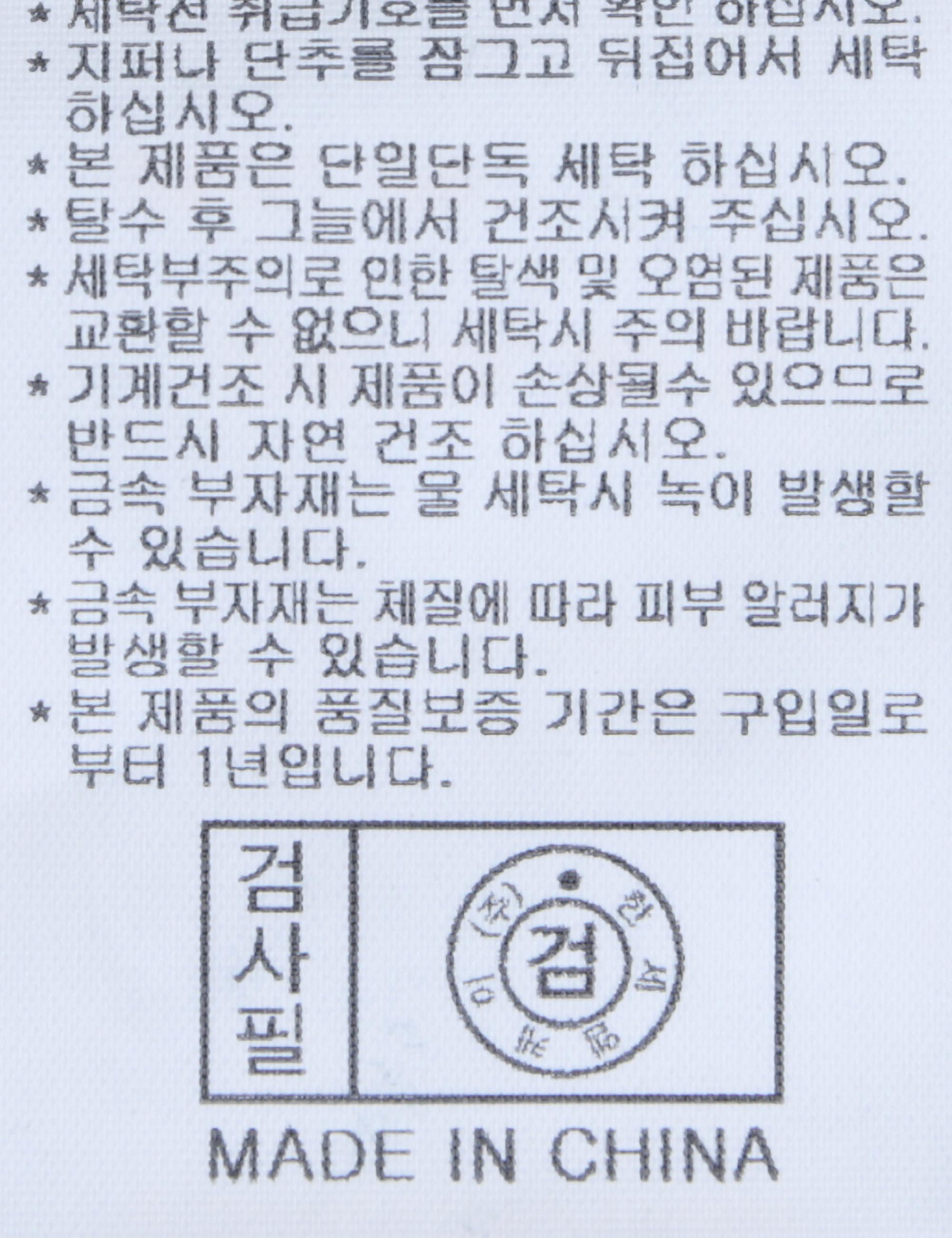 | 세탁방법 및 취급시 주의사항 | 중성세제로 단 시간내에 세탁하십시오.(케어라벨참고) |