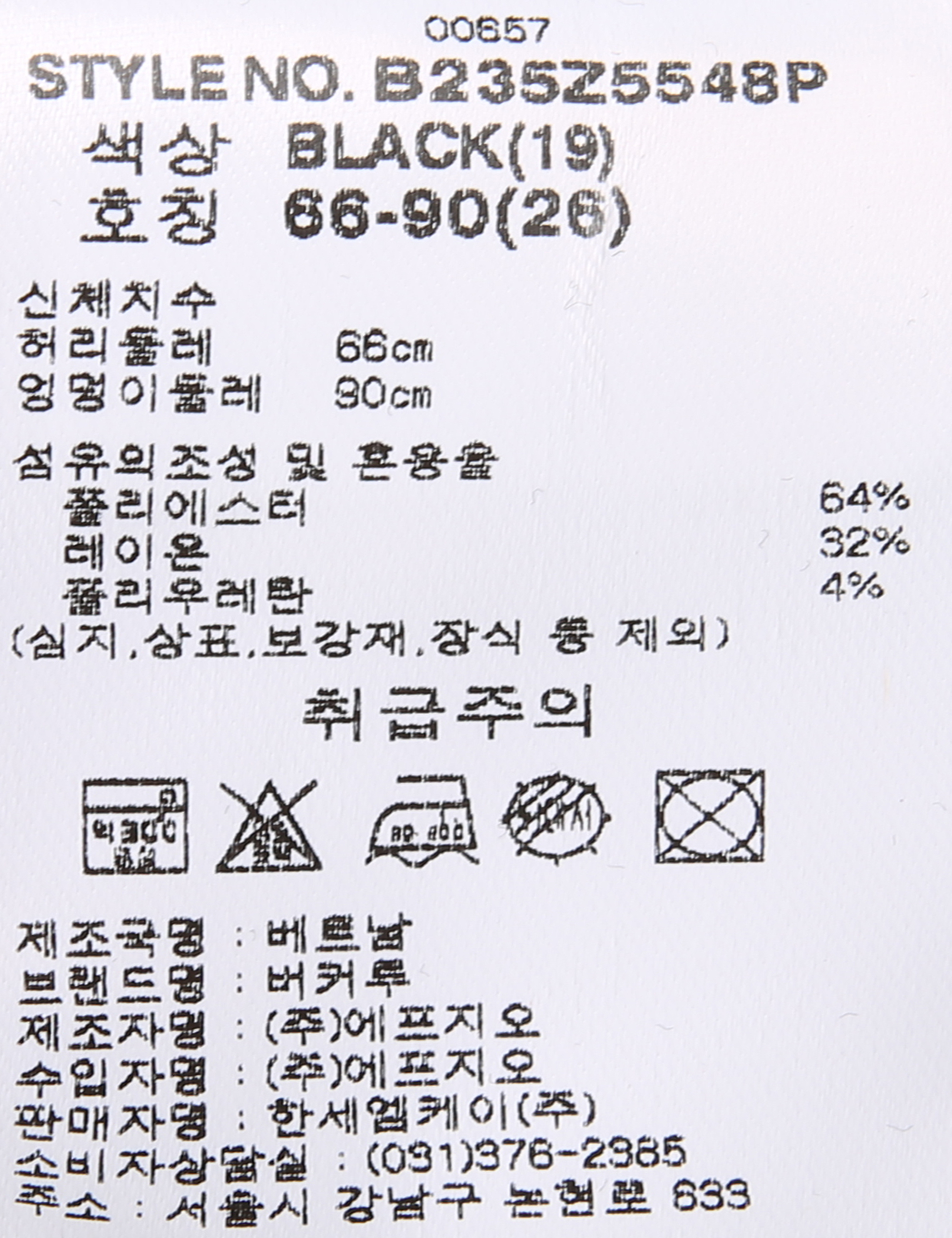 브랜드 홈 바로가기| 제품소재 | [겉감]폴리에스터64% 레이온32% 폴리우레탄4% |