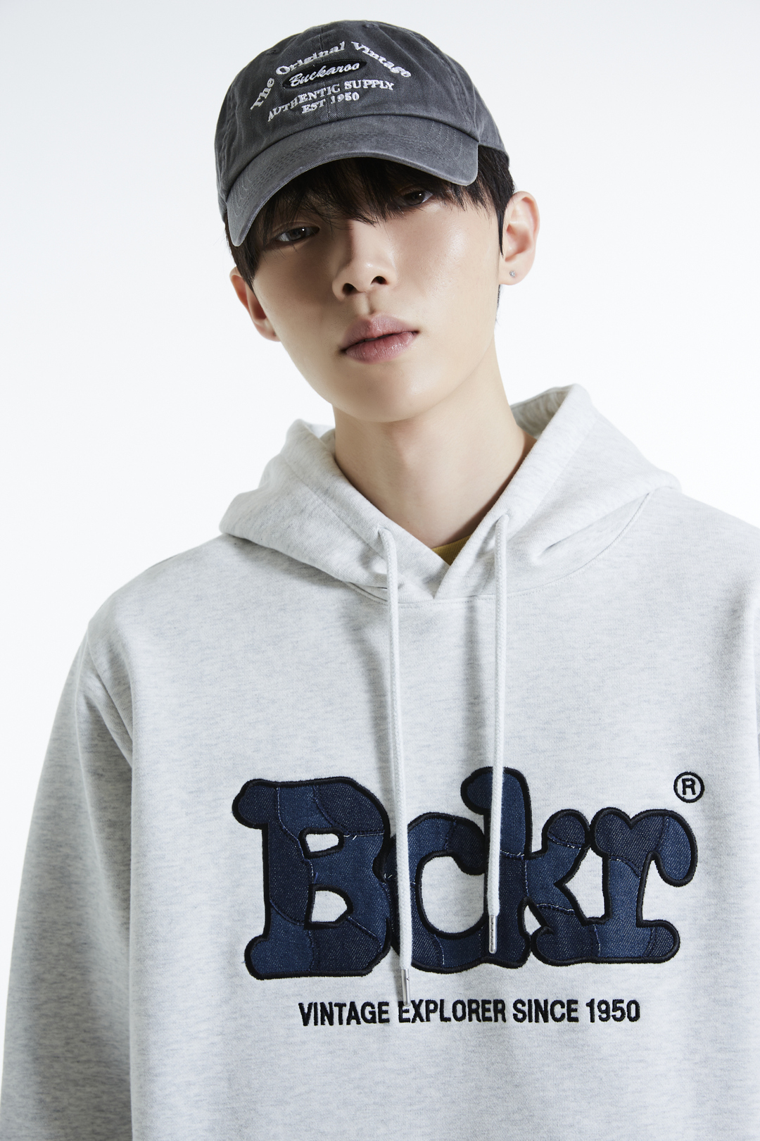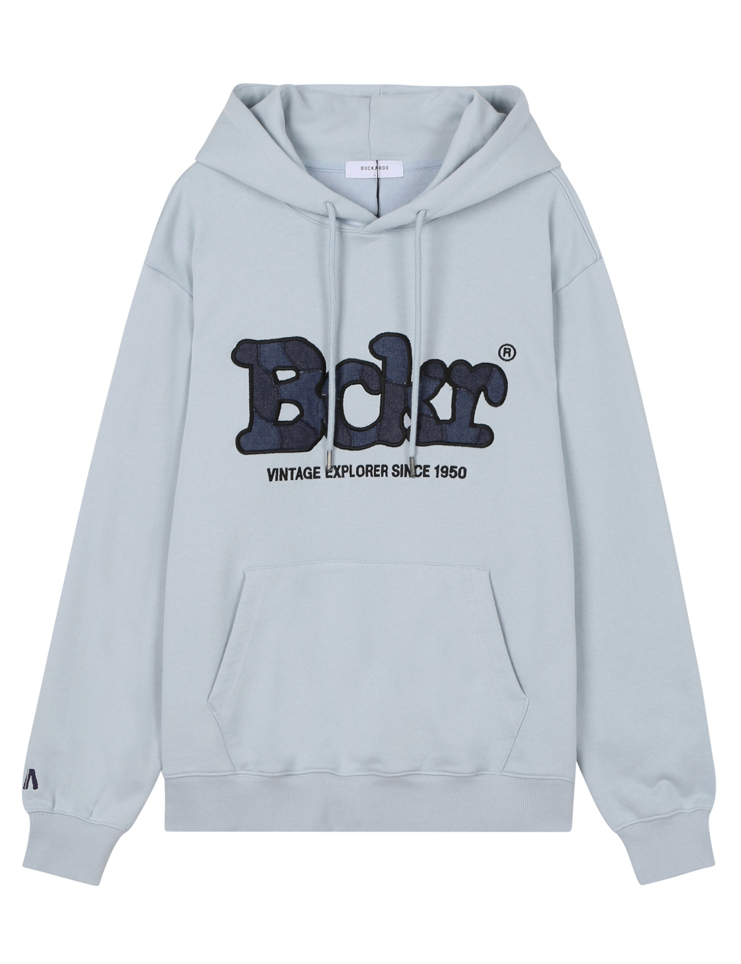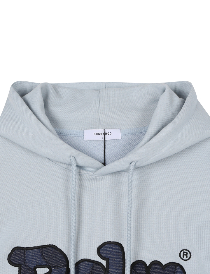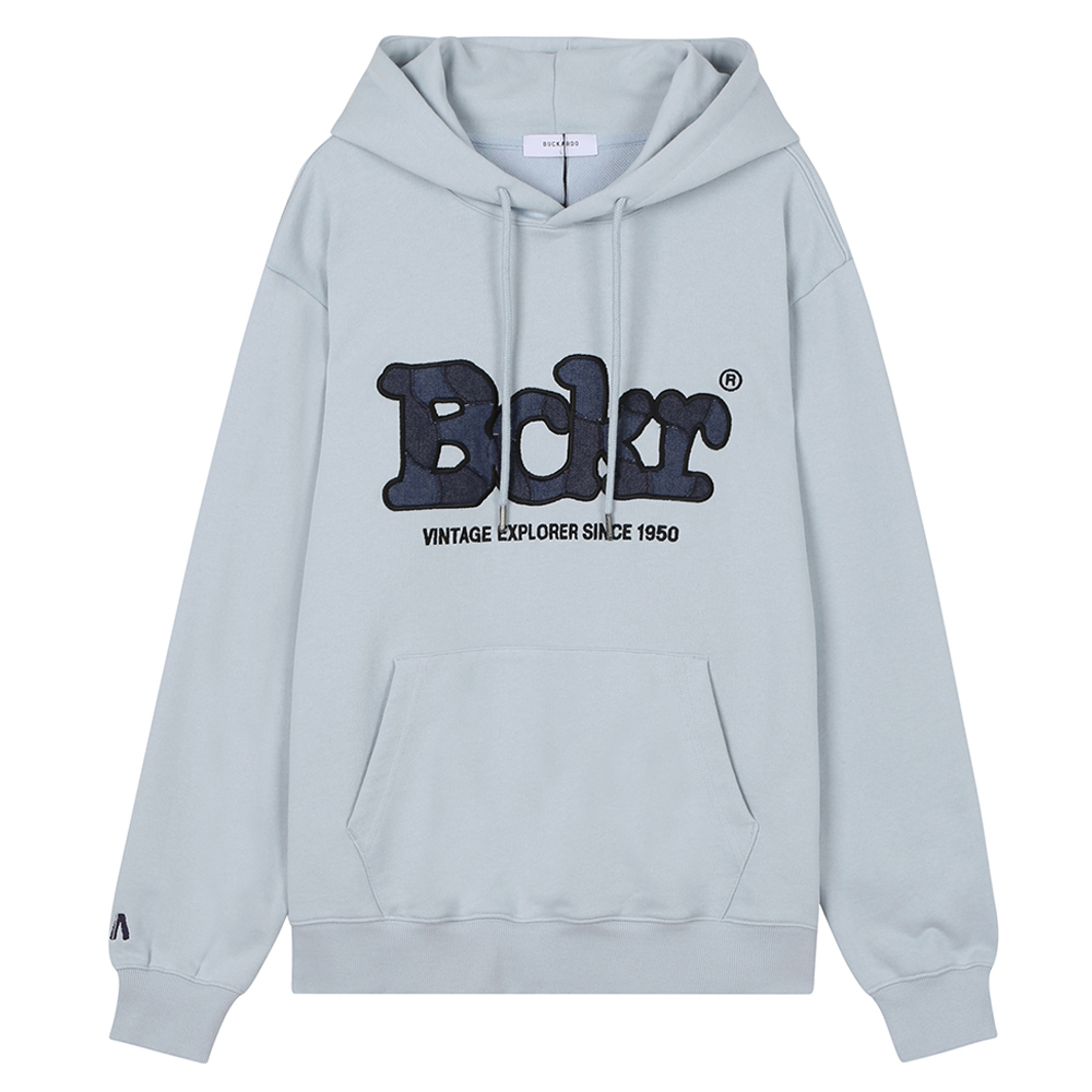 * 가볍고 안정적인 혼용률의 CP 소재에 데님 패치로 빈티지 디테일을 더한 버커루 전판 패치워크 후드티