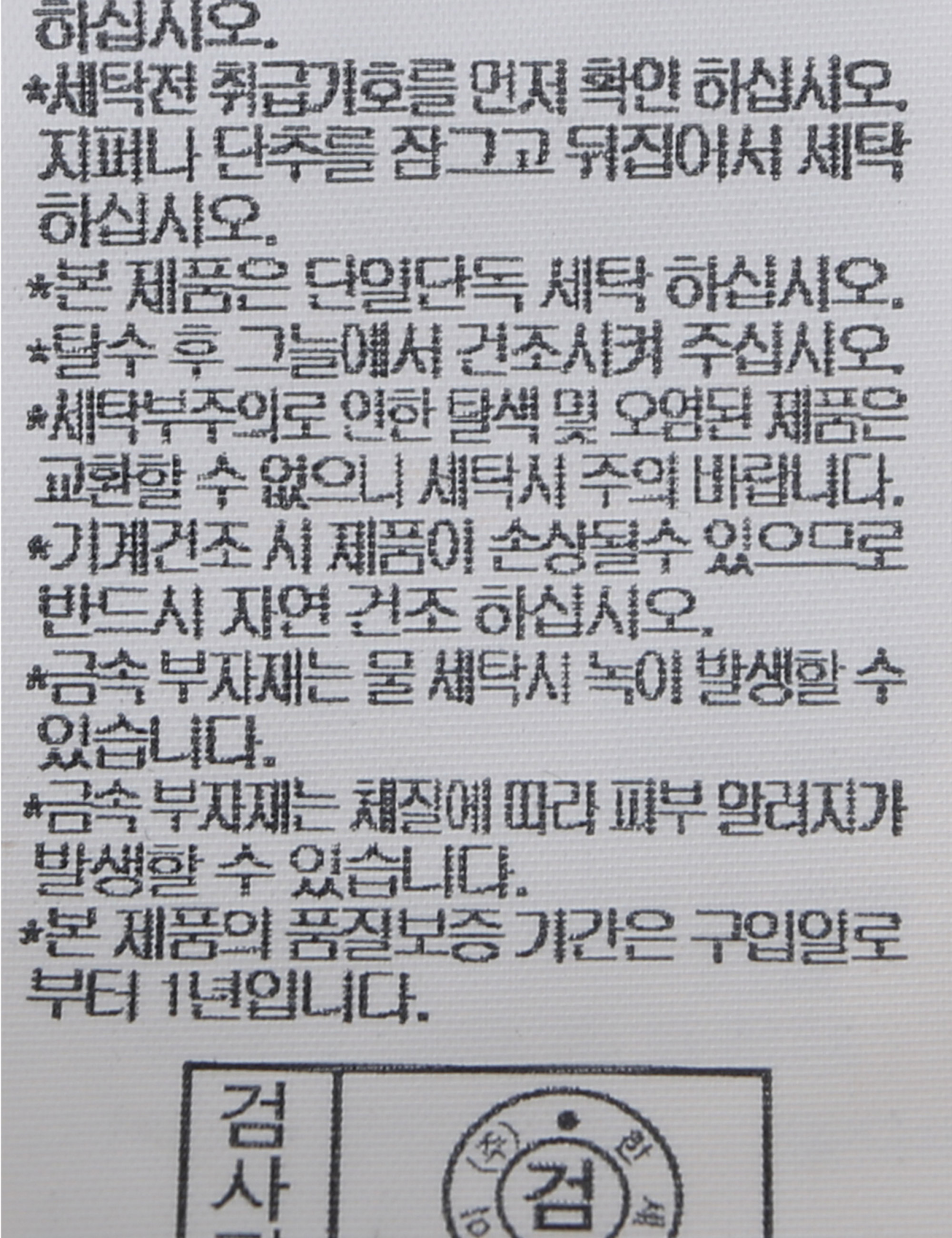 | 세탁방법 및 취급시 주의사항 | 본 제품은 손세탁 하십시오.(케어라벨참고) |