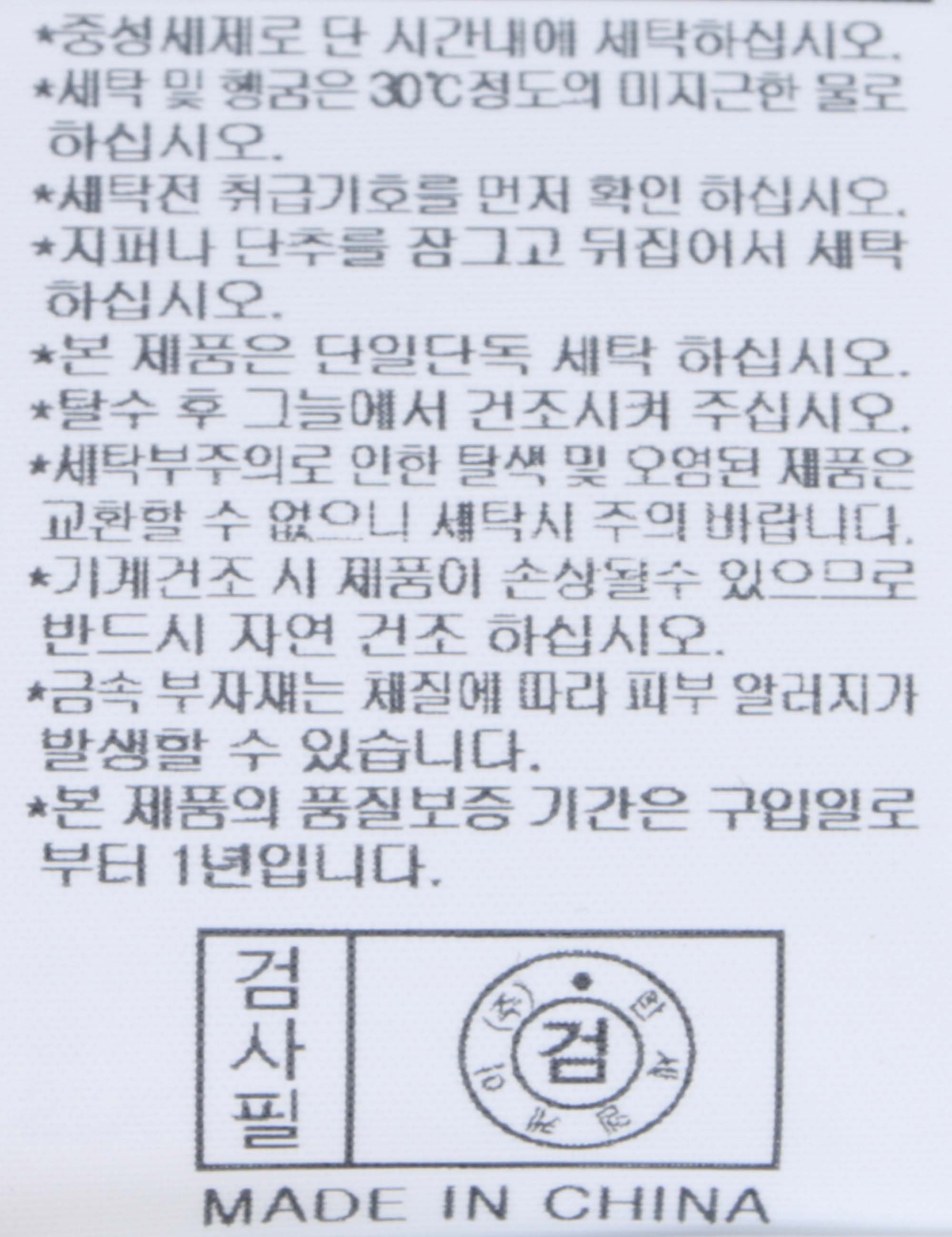 | 세탁방법 및 취급시 주의사항 | 중성세제로 단 시간내에 세탁하십시오.(케어라벨참고) |