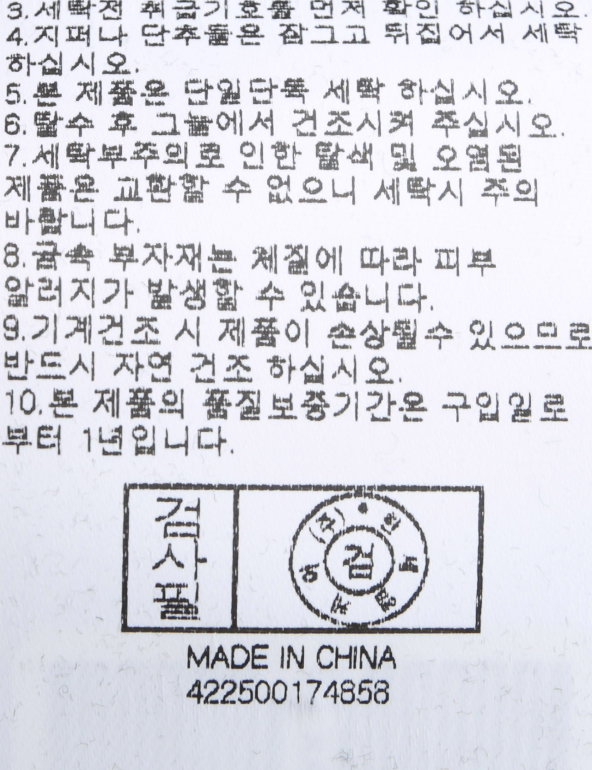 | 세탁방법 및 취급시 주의사항 | 본 제품은 손세탁 하십시오.(케어라벨참고) |