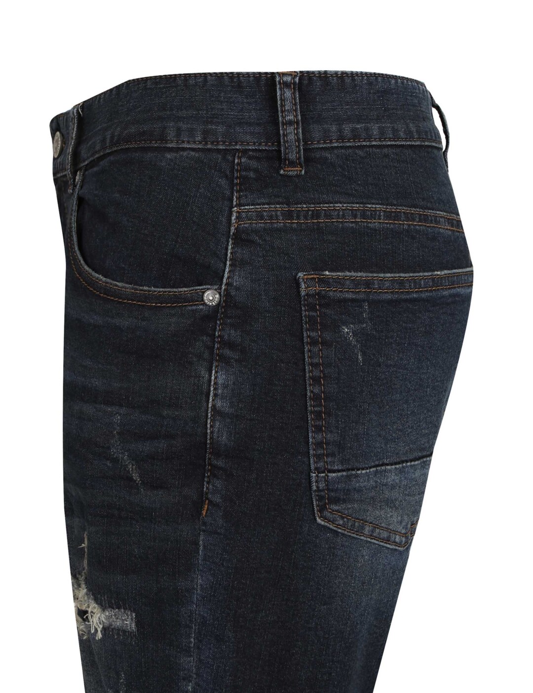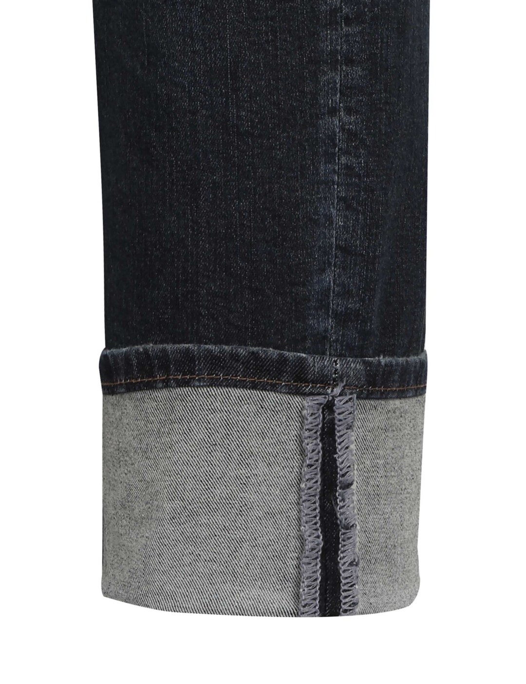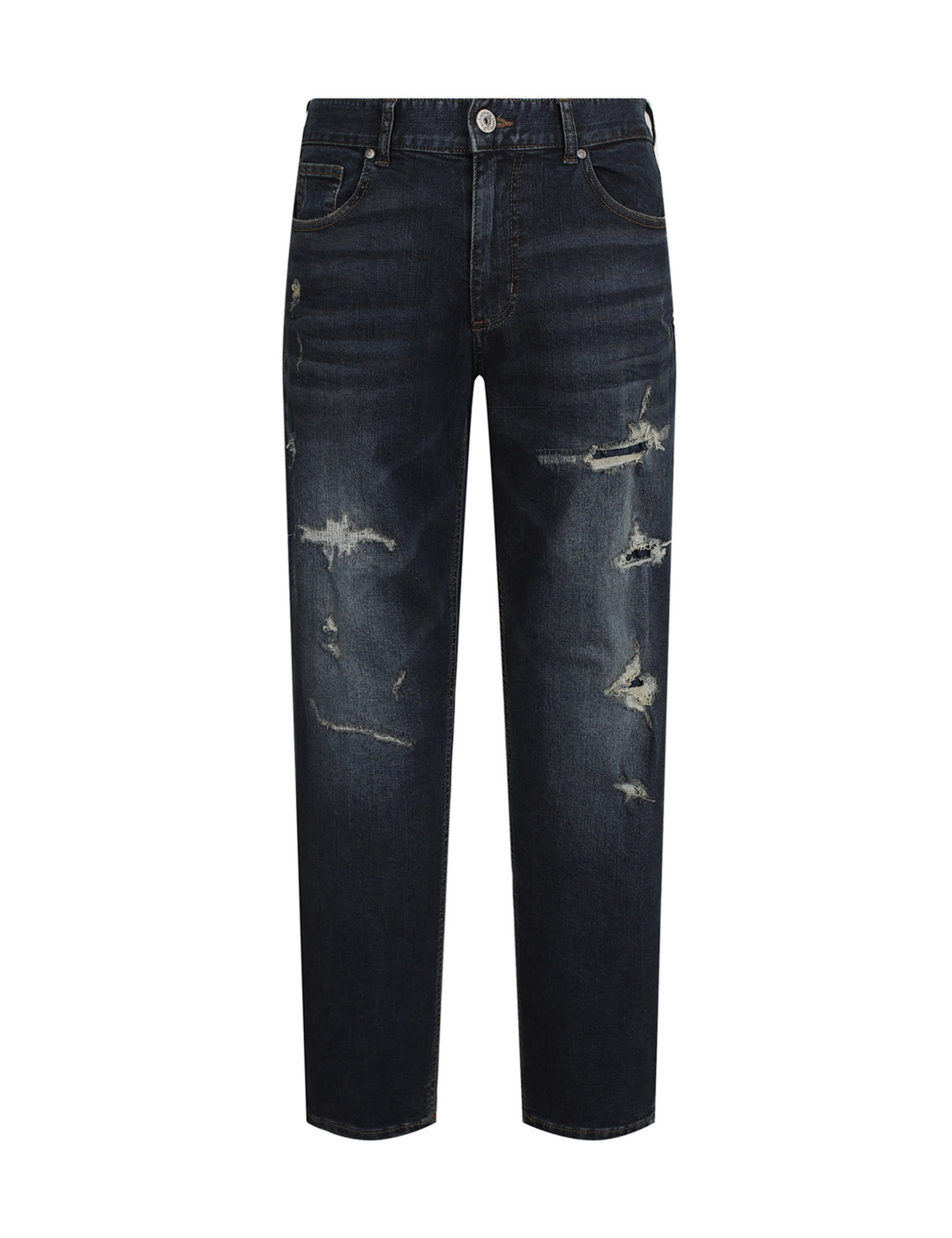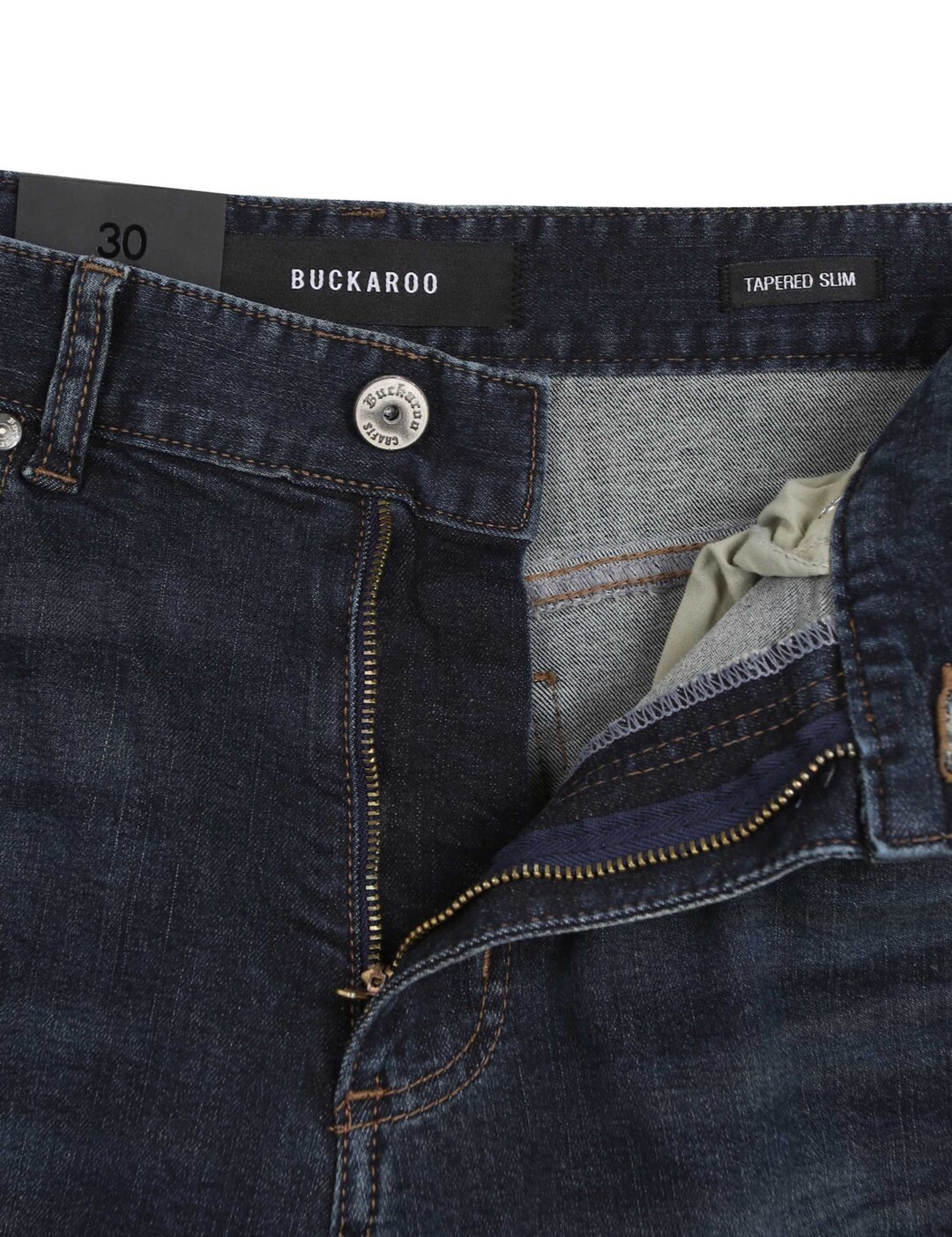 *버커루 대표핏인 테이퍼드 슬림 핏으로 한국인 체형에 가장 최적화 되어 제작된 전체적으로 슬림한 핏의 데님팬츠로 블루블랙 컬러의 데님원단을 사용하여, 데님 본연의 딥한 컬러감에 버커루 특유의 빈티지한 워싱감과 정교한 수작업 터치감, 짜집기, 착색 등의 구제가 포인트인 데님 팬츠