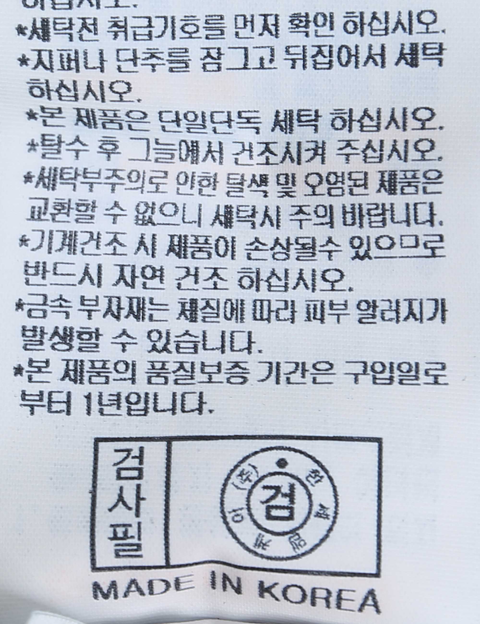 | 세탁방법 및 취급시 주의사항 | 중성세제로 단 시간내에 세탁하십시오.(케어라벨참고) |