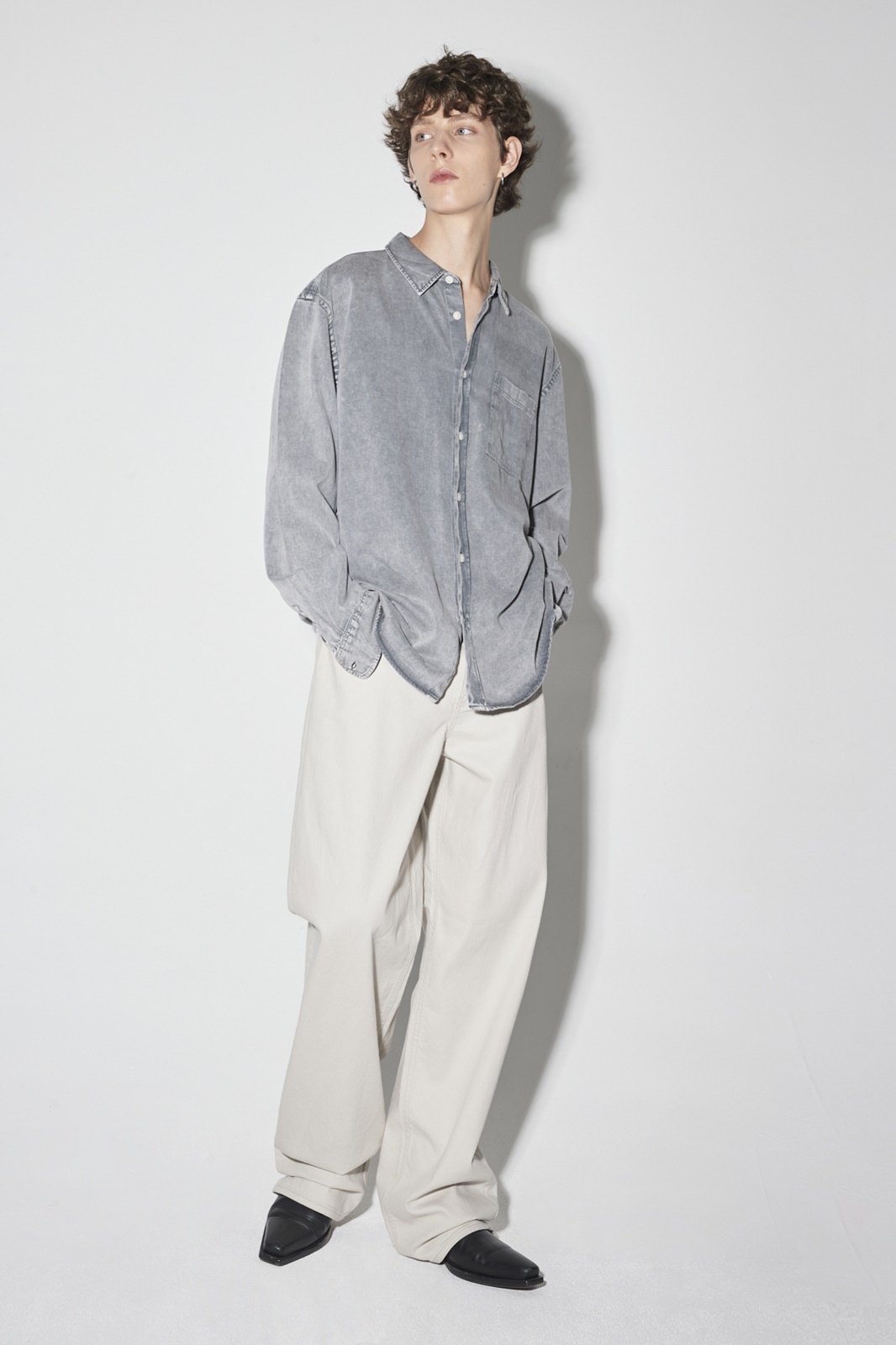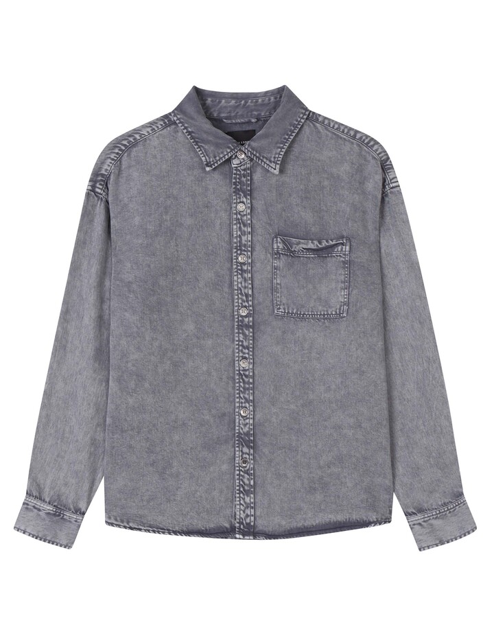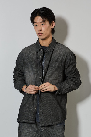 *가먼트 다잉 셔츠로 빈티지한 느낌을 살렸으며 부드러운 터치감과 세미루즈핏 실루엣이 특징으로 셔츠로도 셔켓으로도 활용도가 좋은 스타일