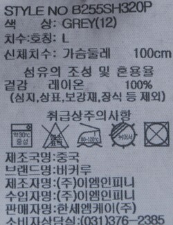 | 세탁방법 및 취급시 주의사항 | 중성세제로 단 시간내에 세탁하십시오.(케어라벨참고) |