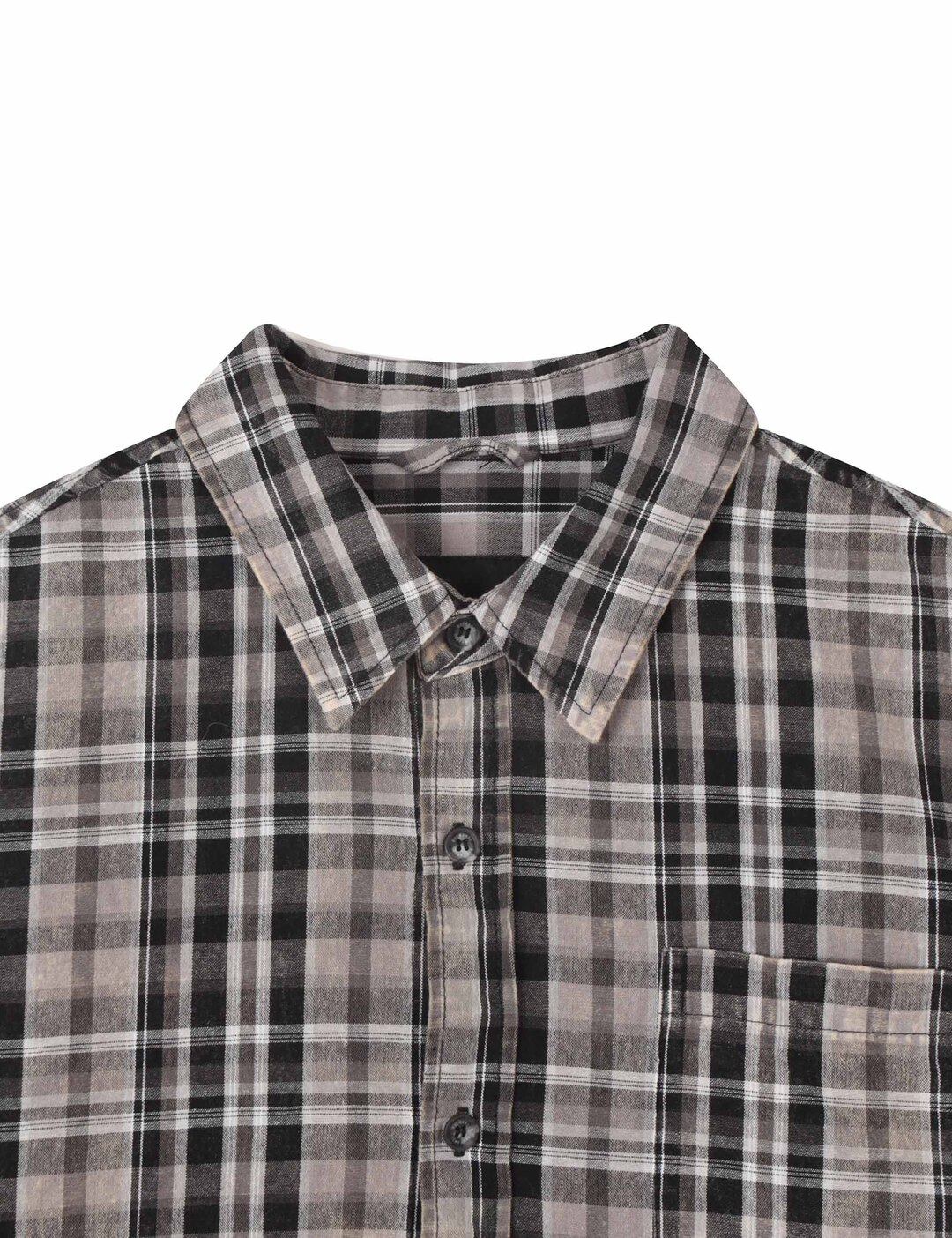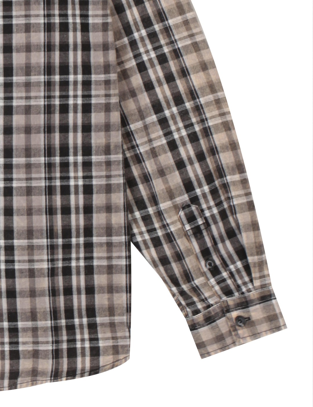 *여유로운 핏감의 체크 셔츠로 부드럽고 착용감 좋은 터치감의 플란넷 소재에 빈티지함을 살리기 위한 워싱공정을 걸쳐 제작된 원포켓 체크 셔츠.