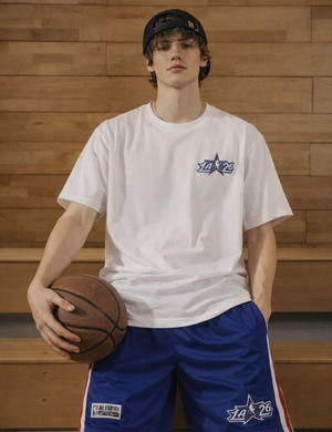 여유 있는 오버핏 실루엣으로 트렌디한 스타일을 완성하면서도 편안한 착용감을 제공하며, 가슴 로고 프린트 위에 아플리케 자수를 레이어드해 입체적이고 고급스러운 디테일을 더했습니다.