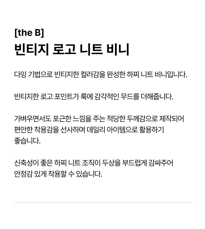 | 상품명 | [the B]빈티지 로고 니트 비니(B265AP015P) |