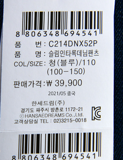 | 상품명 | [컬리수] 슬림인타록데님팬츠 |