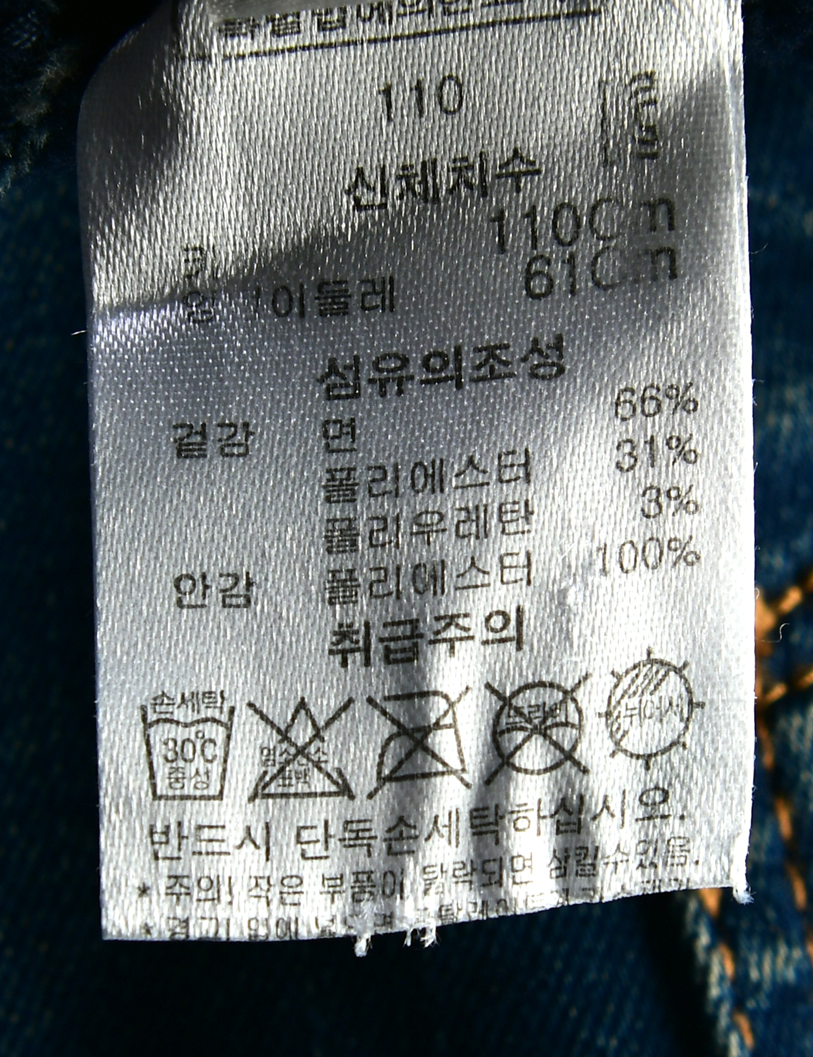 | 세탁방법 및 취급시 주의사항 | 본 세품은 손세탁 하십시오(케어라벨 참고) |