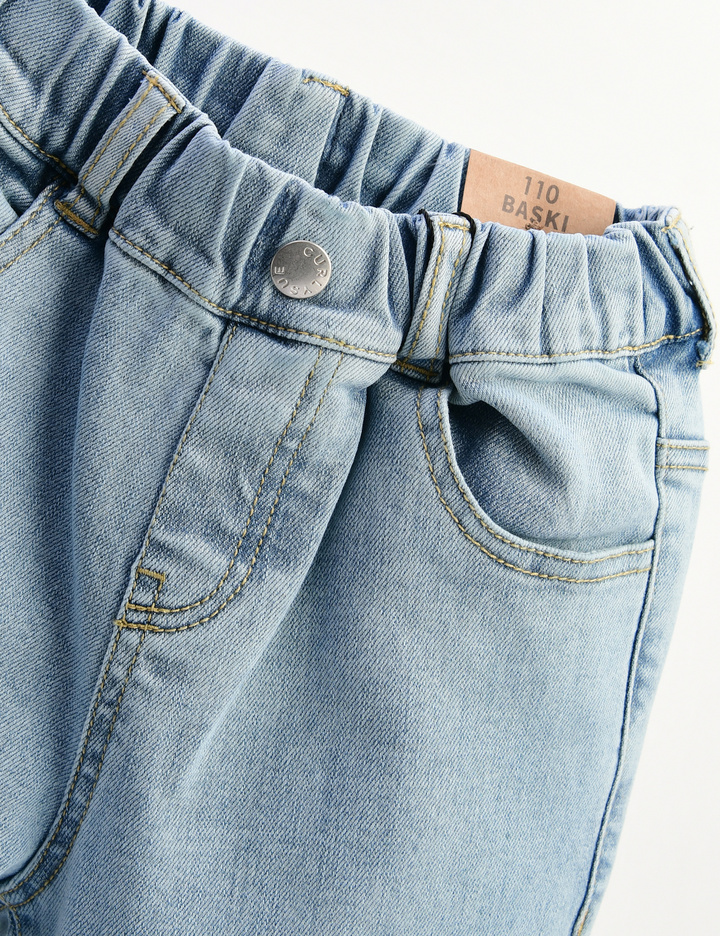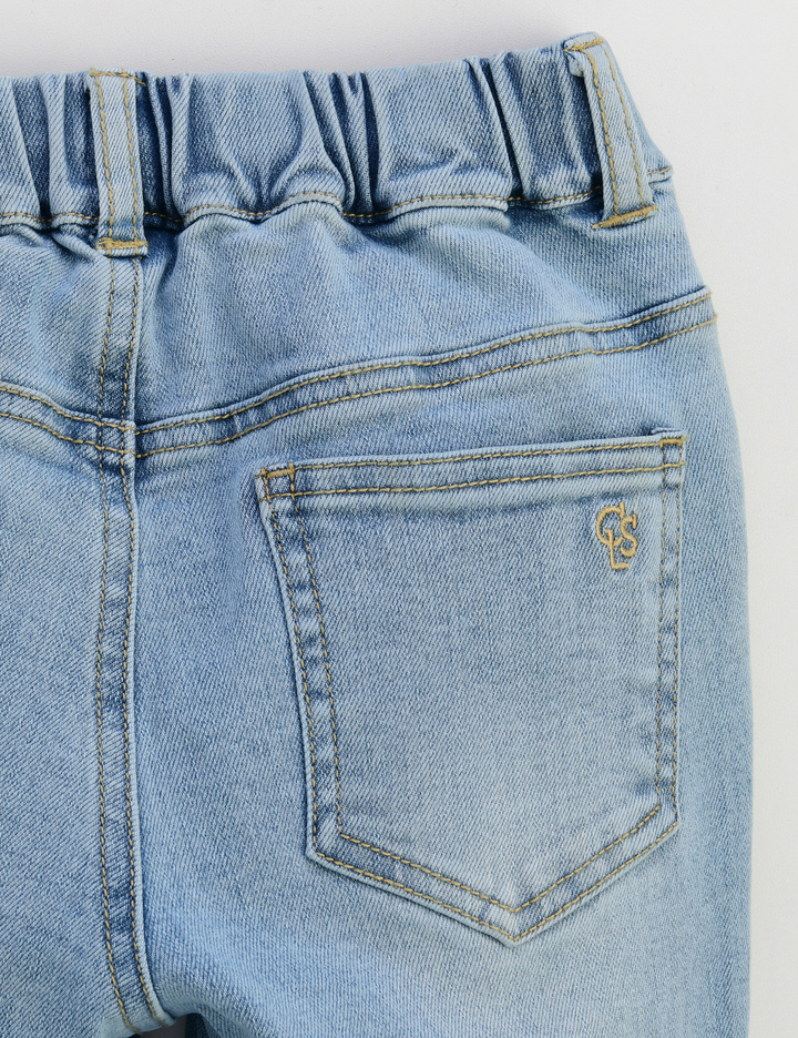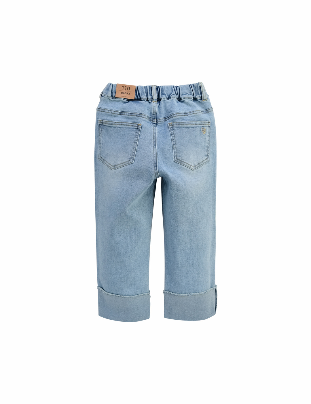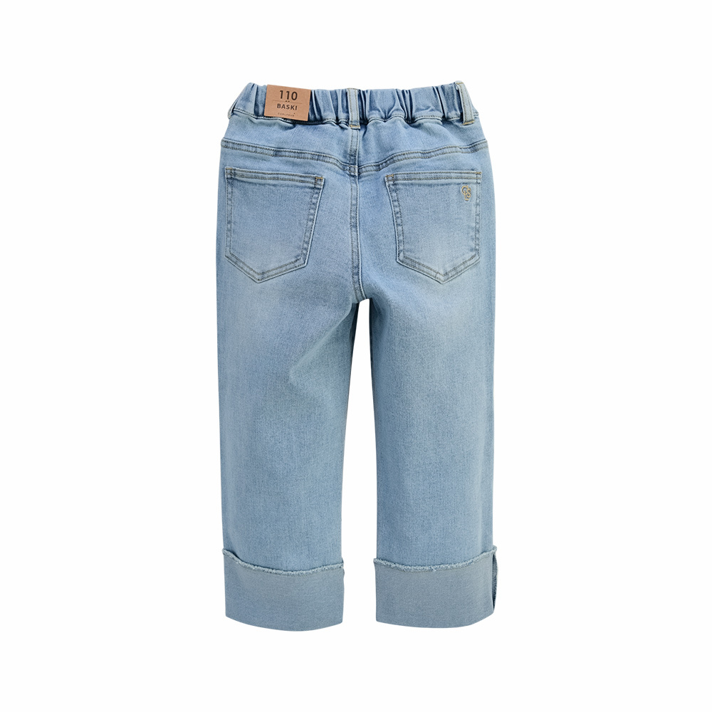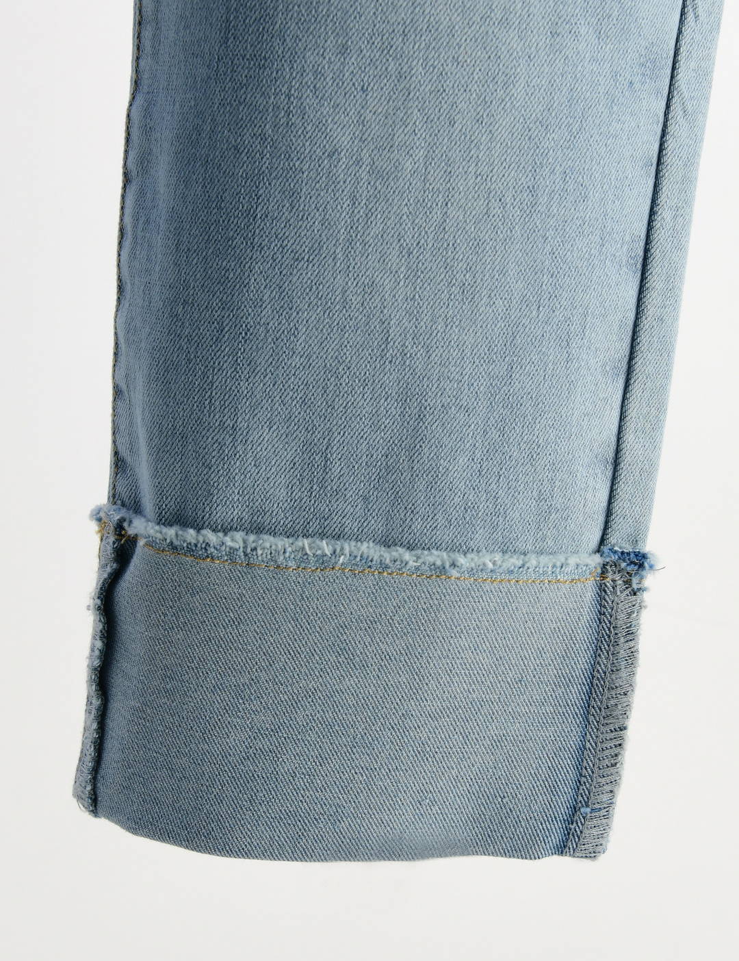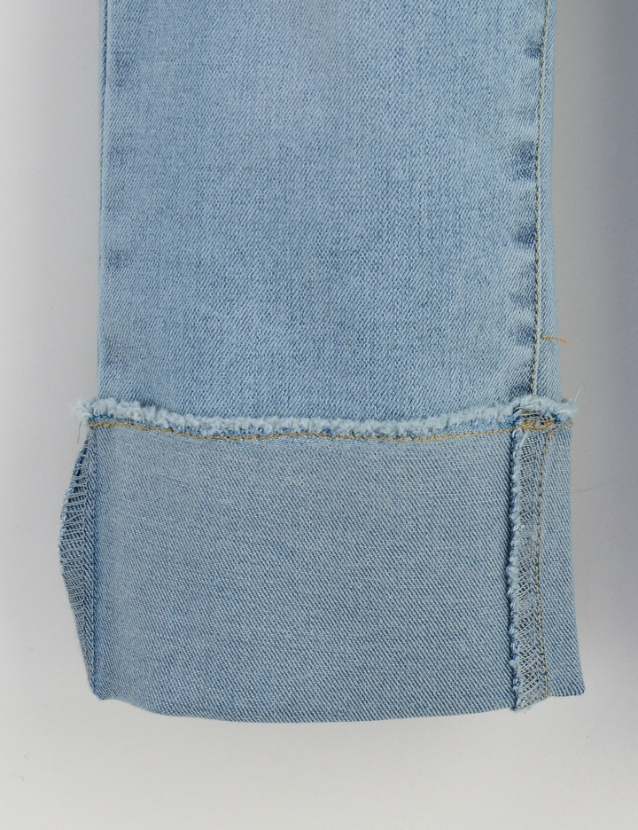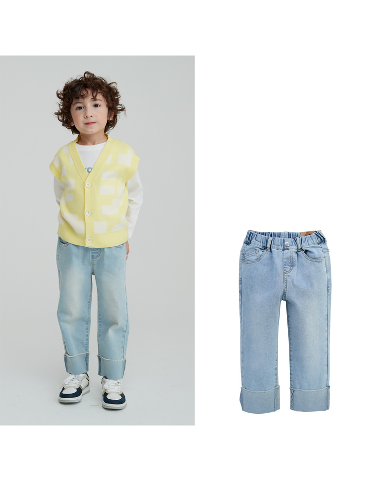신축성이 좋은 원단을 사용하여 착용감이 우수한 데님 팬츠입니다. 여유 있는 와이드 핏에 롤업 스타일로 스타일리시하게 코디하기 좋은 상품입니다.