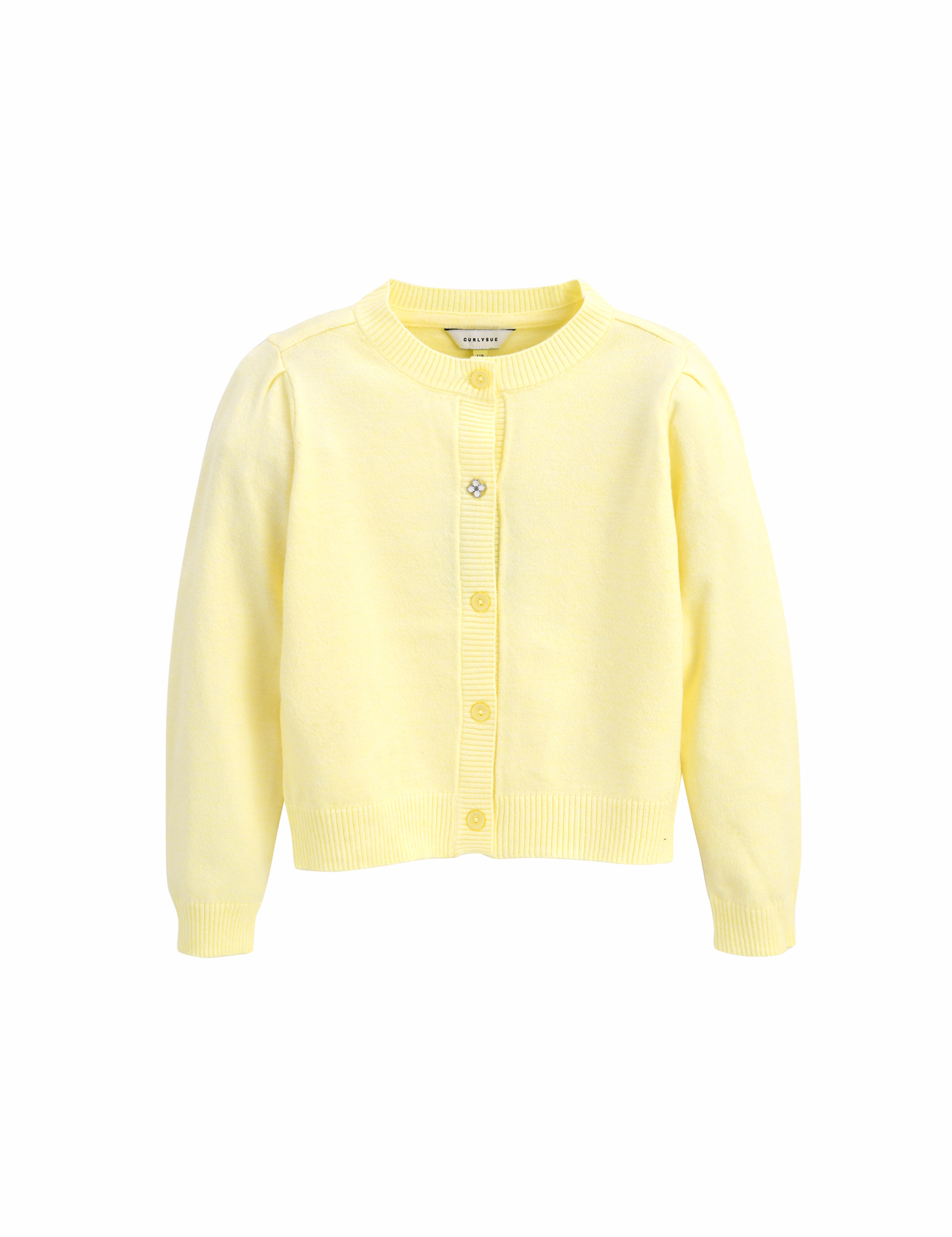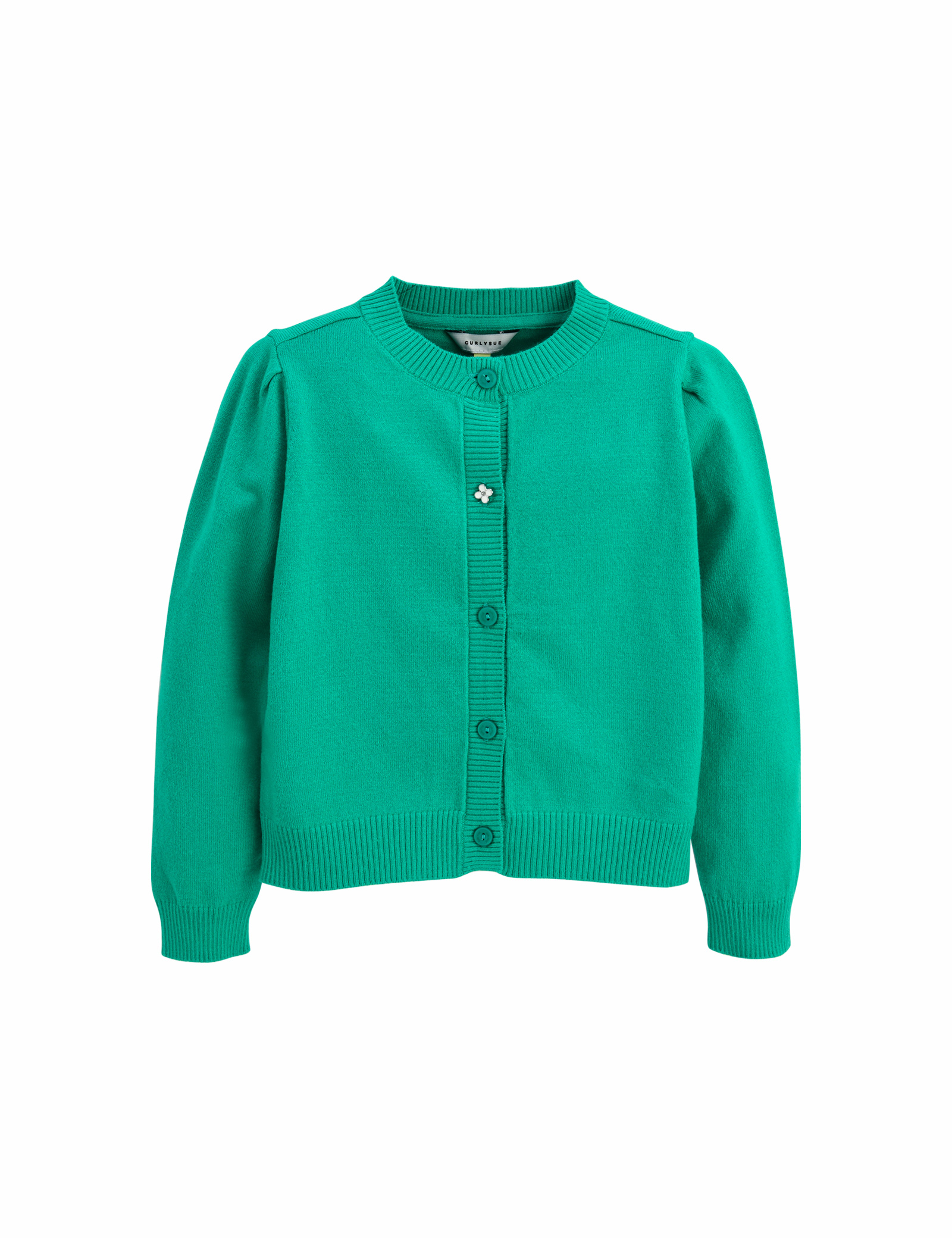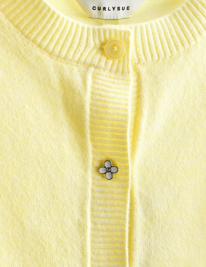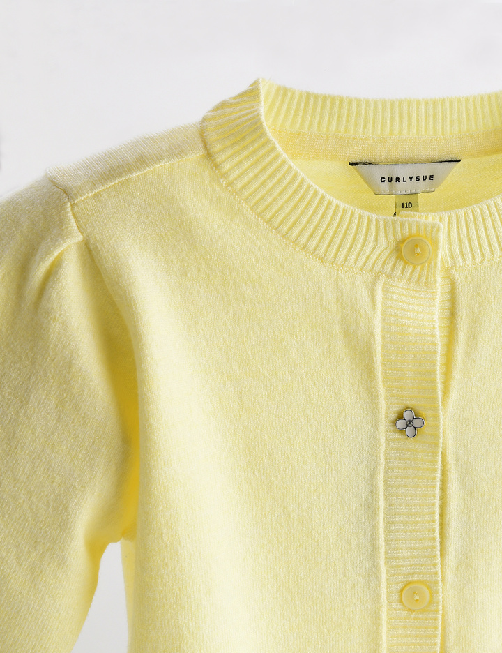 R/N/P 원사를 사용해 촉감을 업그레이드한 컬리수의 여아 기본 가디건 아이템입니다. 앞부분에 꽃 단추 포인트로 러블리하고, 봄에 맞는 화사한 컬러감으로 원피스 코디나 티 블라우스+스커트 세트 코디를 연출해도 좋습니다.