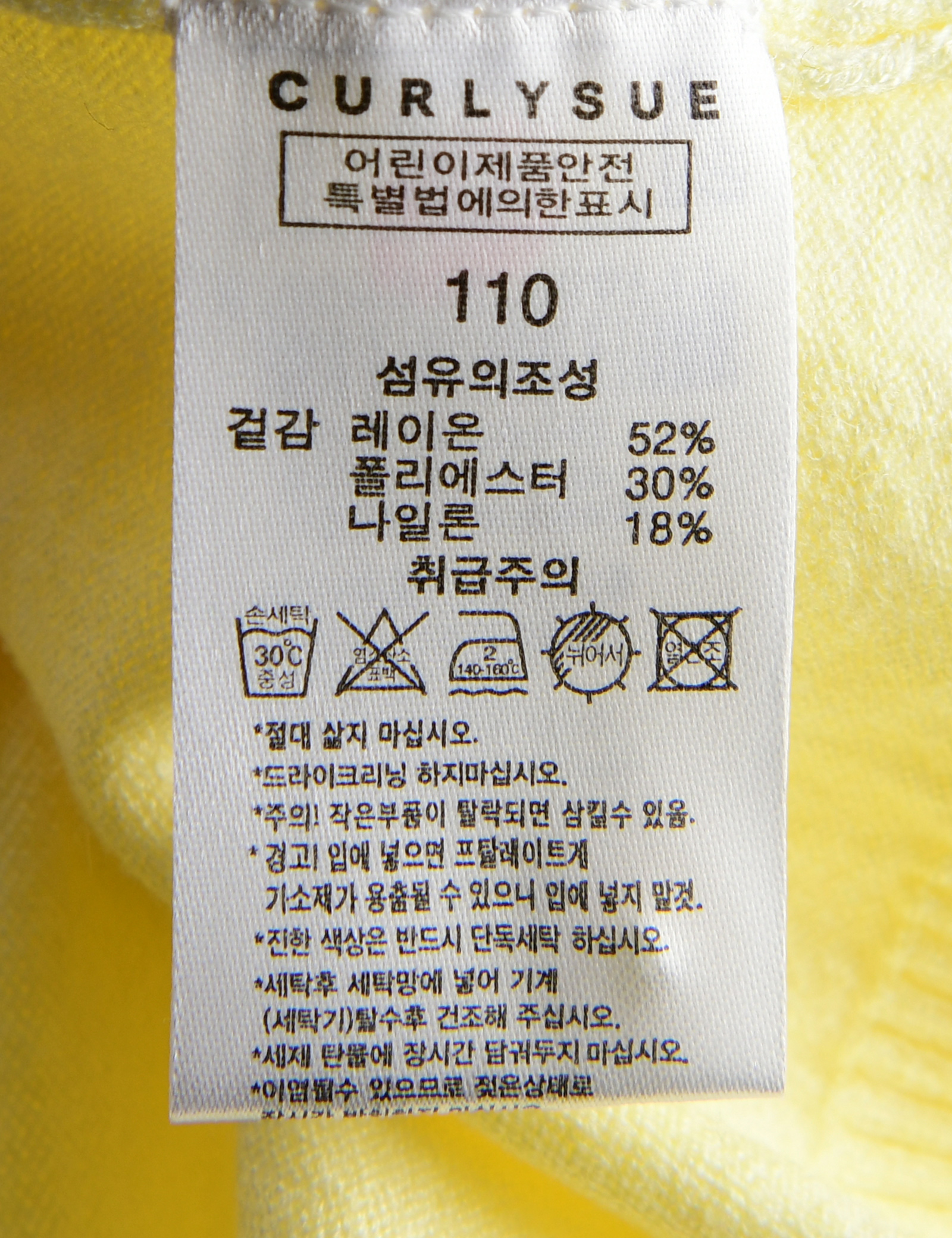 | 세탁방법 및 취급시 주의사항 | 본 세품은 손세탁 하십시오(케어라벨 참고) |