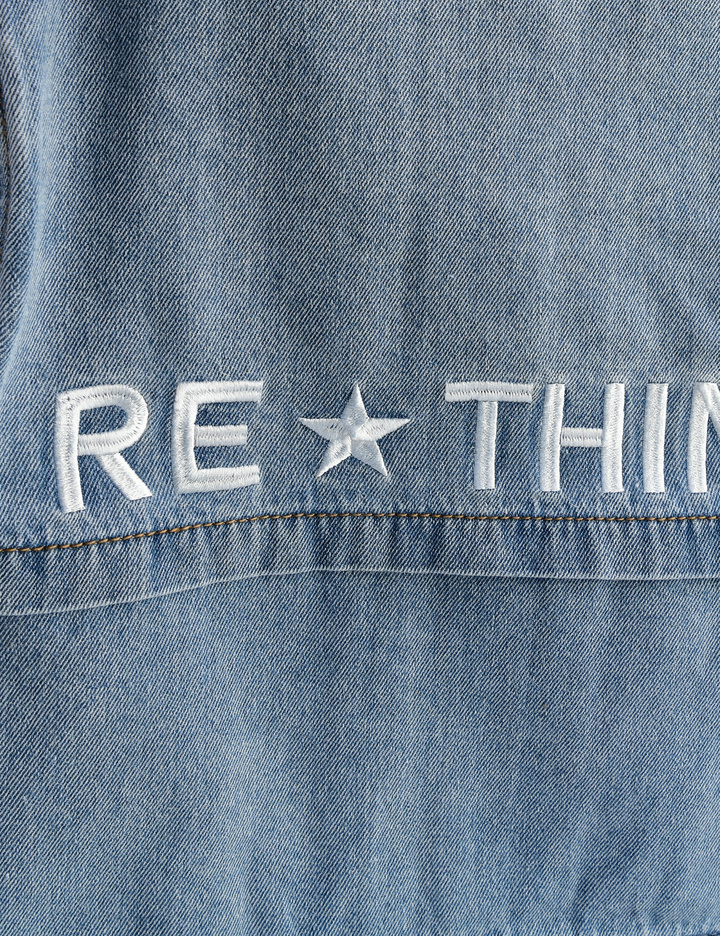 브러쉬 워싱이 고급스러운 느낌을 주는 캐주얼 데님 재킷입니다. 여유 있는 핏으로 착용감이 좋고 등판 부분에 레터링 자수가 고급스러운 느낌을 주는 상품입니다.