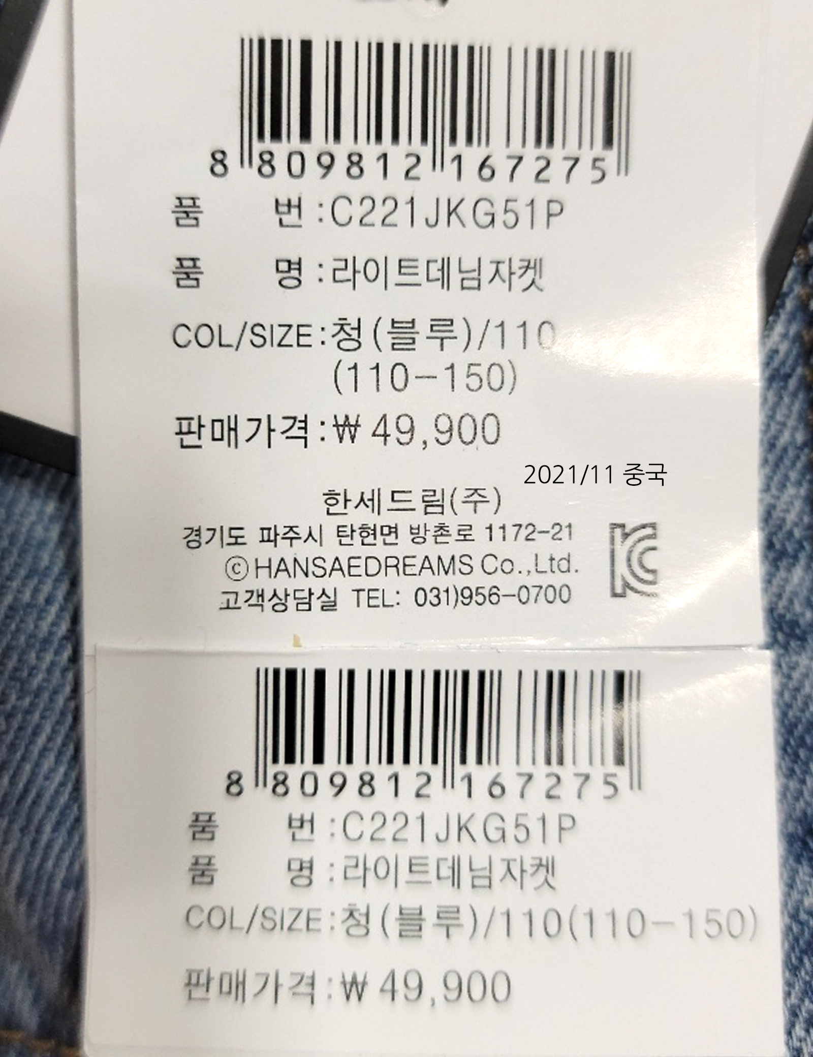 해당 인증정보는 판매자가 등록한 것으로 등록정보에 대한 일체의 책임은 판매자에게 있습니다.