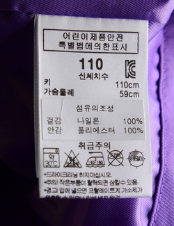 | 세탁방법 및 취급시 주의사항 | 본 세품은 손세탁 하십시오(케어라벨 참고) |