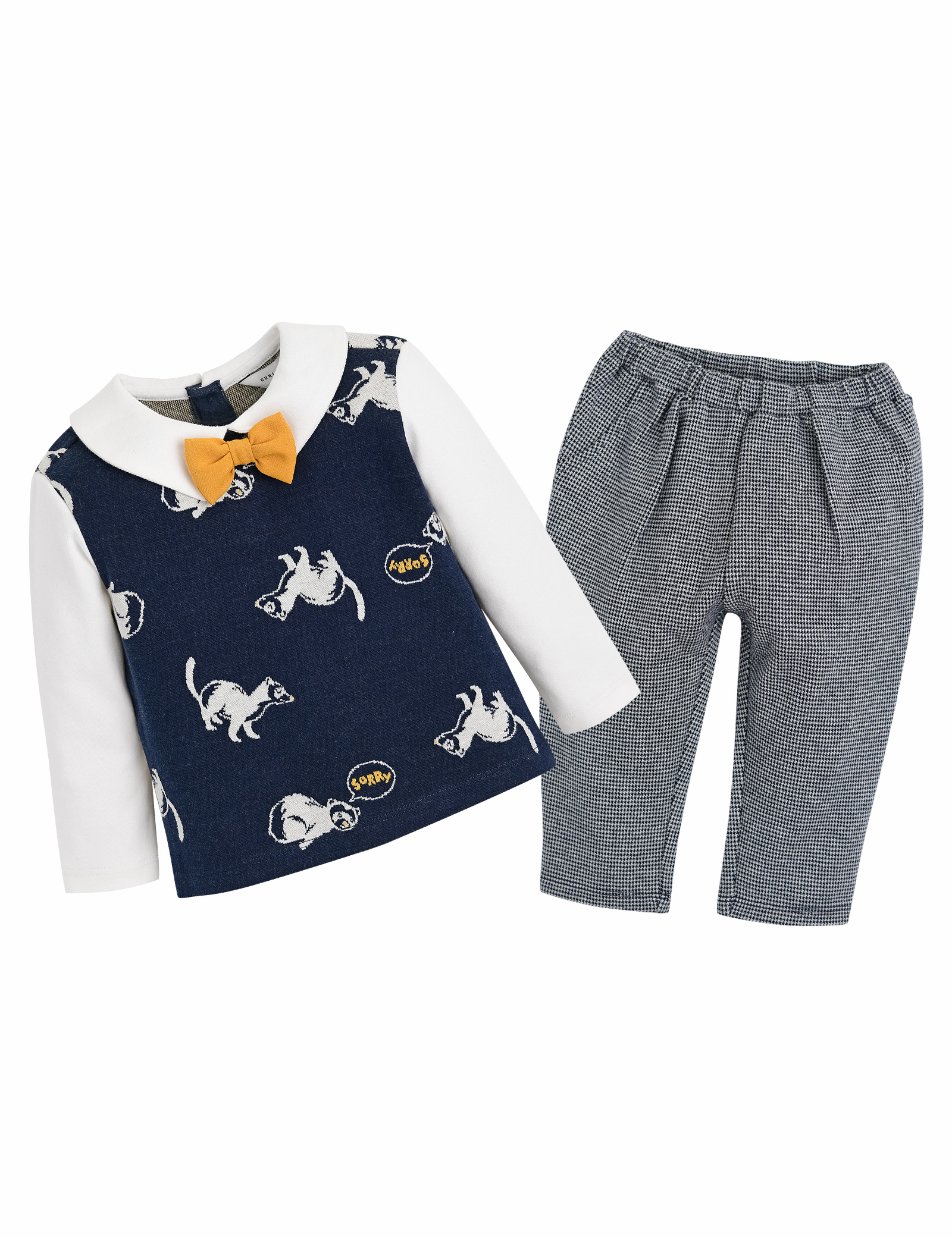 무드의 상하의 세트입니다. 넥에 옐로우