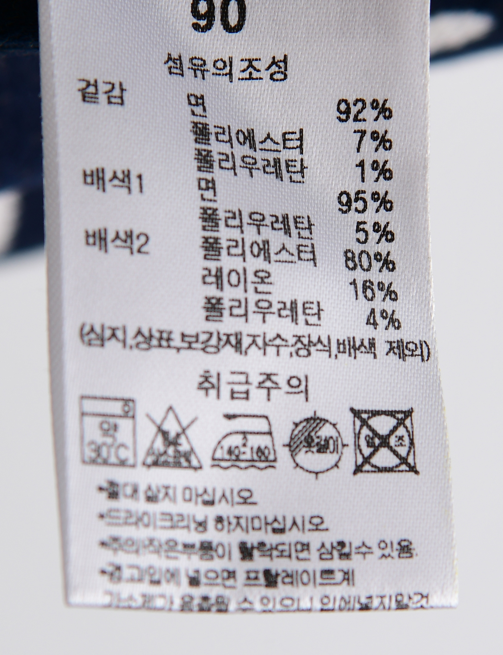 | 세탁방법 및 취급시 주의사항 | 본 세품은 손세탁 하십시오(케어라벨 참고) |