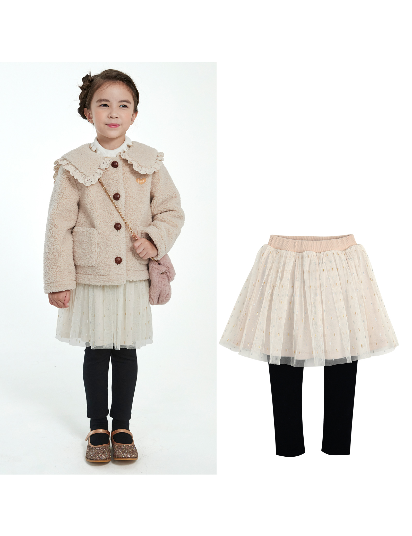 상의 맨투맨 티셔츠와 세트로 잘 어울리는 블링블링한 샤가 돋보이는 스랭스입니다. 후라이스 스판의 레깅스 소재를 사용하여 활동시 편안하며 데일리,할로윈,선물용으로도 추천드립니다.